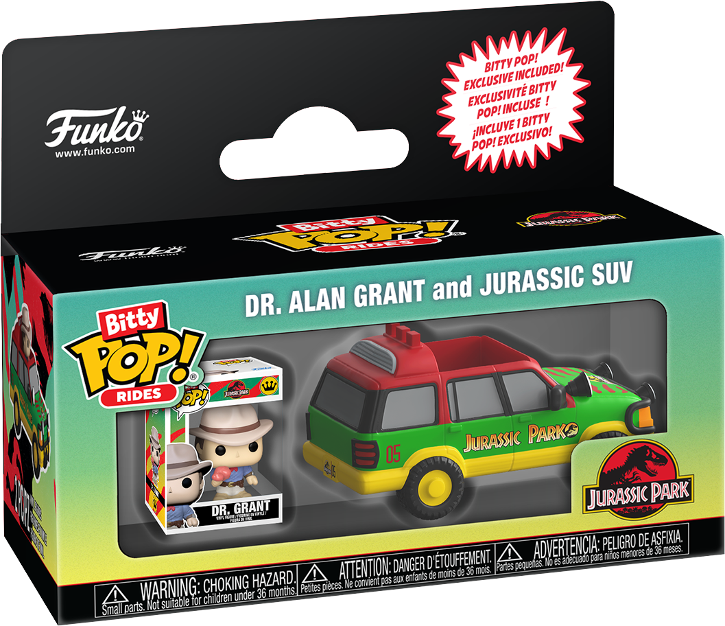 • Includes Bitty POP! figure of Dr Alan Grant and miniature Jurassic SUV