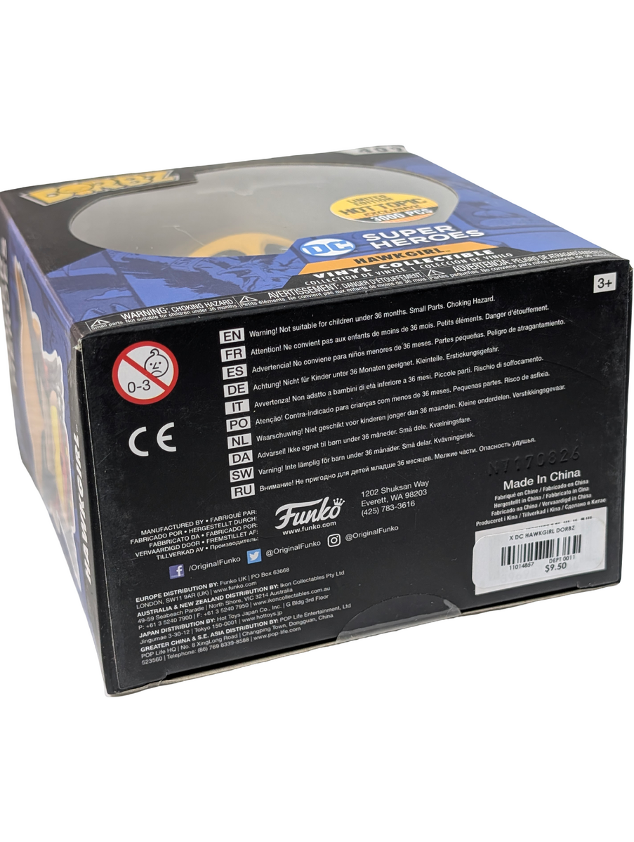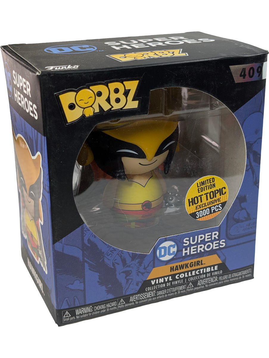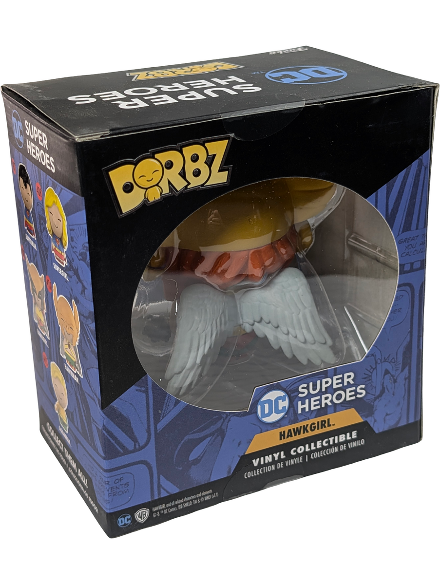 Designed for display, whether boxed or unboxed. Condition notes: Minor dents to top of box. This Funko Dorbz figure features Hawkgirl from DC Super Heroes in a metallic finish. Hawkgirl is a long-standing DC character known for her winged design and appearances across comics, animation, and television. This item is a limited edition release of 3000 pieces. It is classified as non-mint due to minor packaging dents, while the figure itself remains suitable for display.