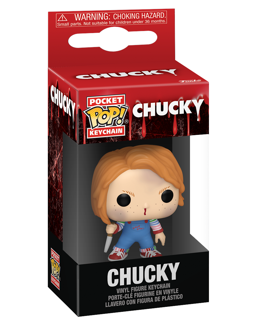 He's your friend 'til the end! Bring the terrifying toy with you everywhere with this official Funko Pocket POP! Keychain figure of Chucky. Pocket POP! #753 features a miniature version of the notorious killer doll, complete with his signature overalls and terrifying red hair. This collectible figure is perfect for attaching to keys, backpacks, or purses, serving as a chilling tribute to the horror icon from both the classic Child's Play movie franchise and the modern Chucky TV series.