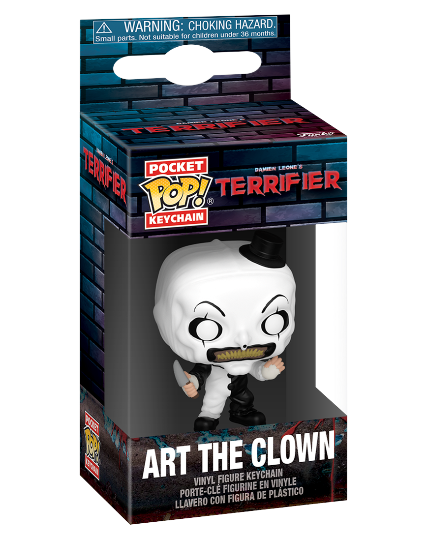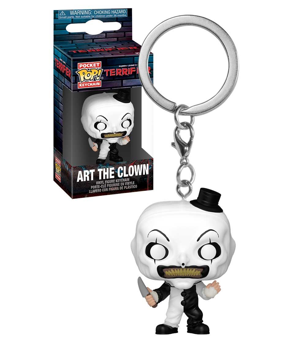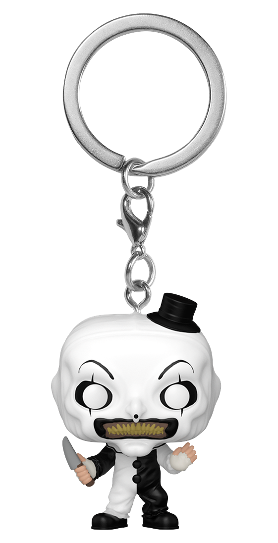 The silent, sinister slasher is here to join your keys! Bring the terrifying visage of Art The Clown with you everywhere with this official Funko Pocket POP! Keychain figure. Pocket POP! #756 features a miniature version of the notorious villain from the brutal Terrifier movie franchise, complete with his iconic black and white clown makeup and unsettling smile. This collectible figure is perfect for attaching to keys, backpacks, or purses, serving as a chilling tribute to the modern horror icon.