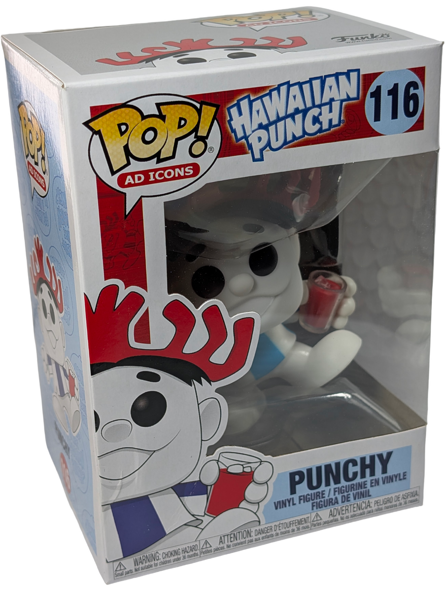 A well-known character captured in classic Funko style. Condition notes: Crease on front and back of box. This Funko POP! figure features Punchy, the long-running mascot of Hawaiian Punch, presented in the Ad Icons range. Punchy is widely recognised from decades of advertising, making this figure a nostalgic addition for collectors of pop culture and brand icons. This item is classified as non-mint due to packaging condition only. The figure itself remains suitable for display and collection.