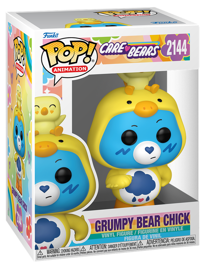 Grumpy Bear is getting into the Easter spirit... sort of. This POP! Animation figure features Grumpy Bear dressed as a chick, blending classic Care Bears charm with a fun seasonal twist. It's equal parts grumpy and adorable, making it a cheerful addition to any POP! display.