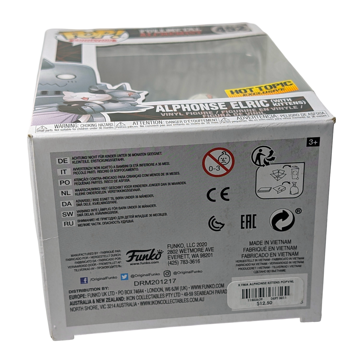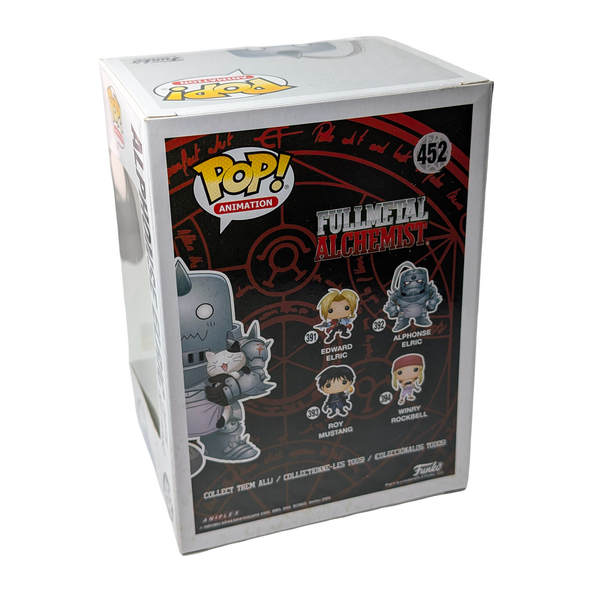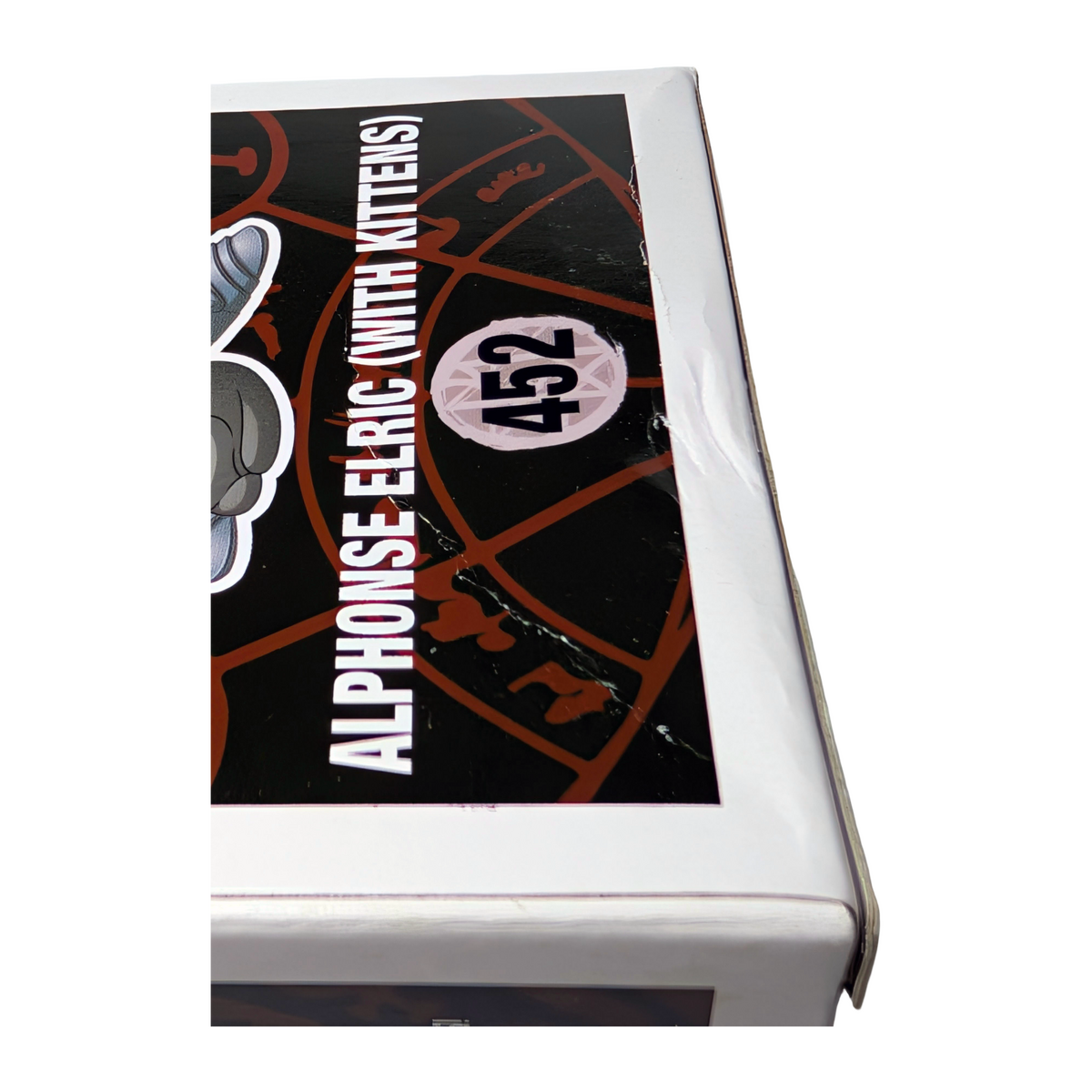 A collectible that works equally well solo or as part of a set. Condition notes: Dent on side of box. This Funko POP! figure features Alphonse Elric from Fullmetal Alchemist in a lighter moment, wearing an apron and holding kittens, with a third kitten included as a separate prop. Alphonse is widely recognised as the younger Elric brother, bound to a suit of armour after a failed alchemical experiment. With packaging damage noted, this piece is best suited to collectors who plan to display the figure out of the box.
