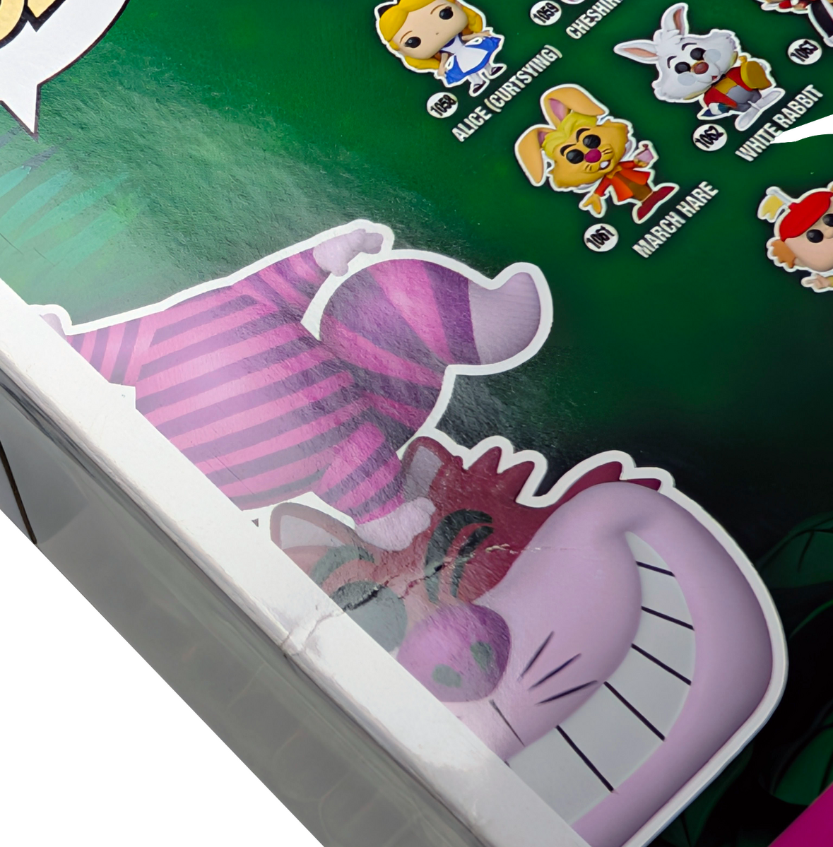 A neat option for collectors expanding a specific range. Condition notes: Creases on side of box. This Funko POP! Disney figure features the Cheshire Cat from Alice in Wonderland, shown in a playful standing-on-head pose that suits the character's famously mischievous nature. The Cheshire Cat is well known for its wide grin and disappearing act, making it one of Disney's most memorable animated characters. This item is classed as non-mint due to visible creasing on the box, and is best suited to display-focused collections.