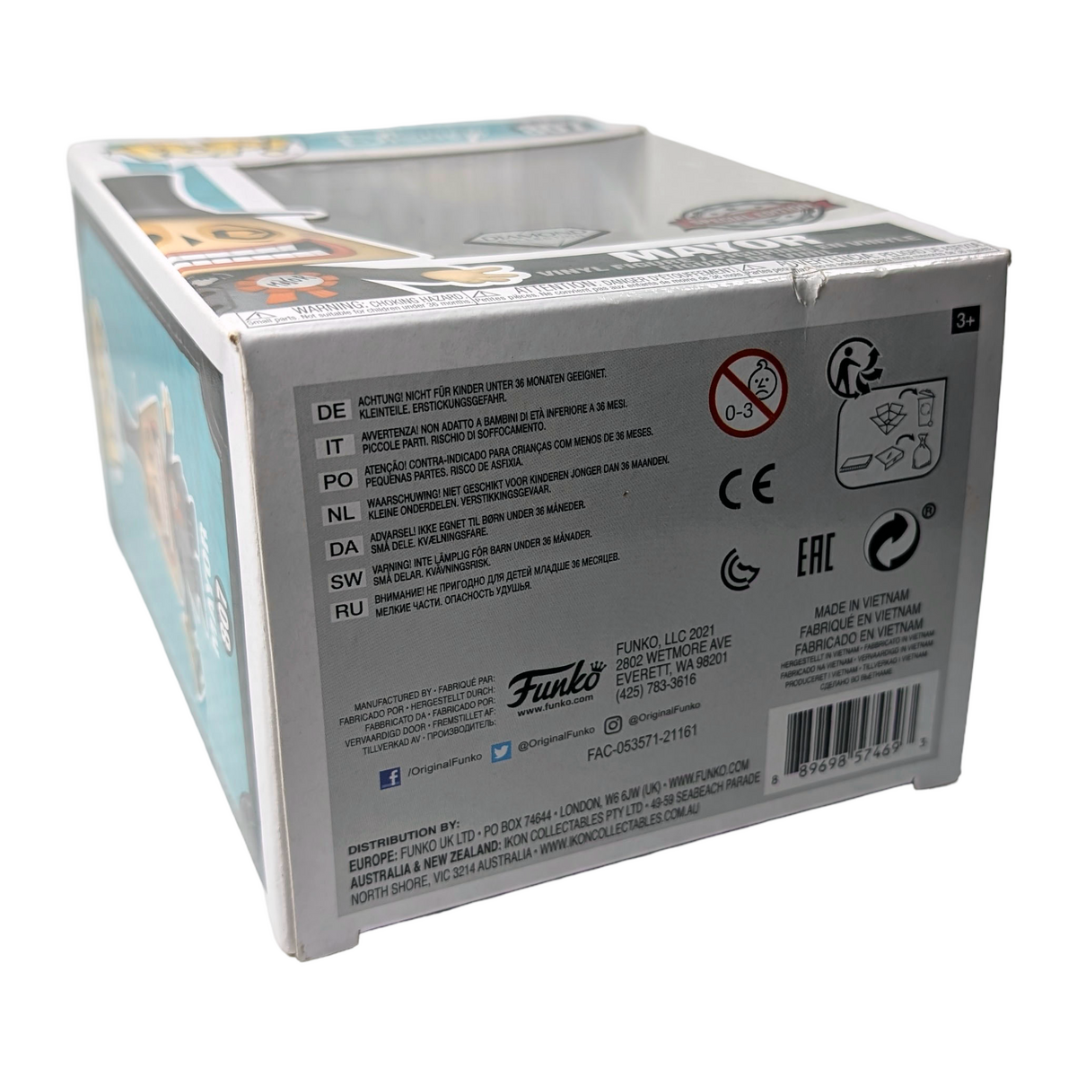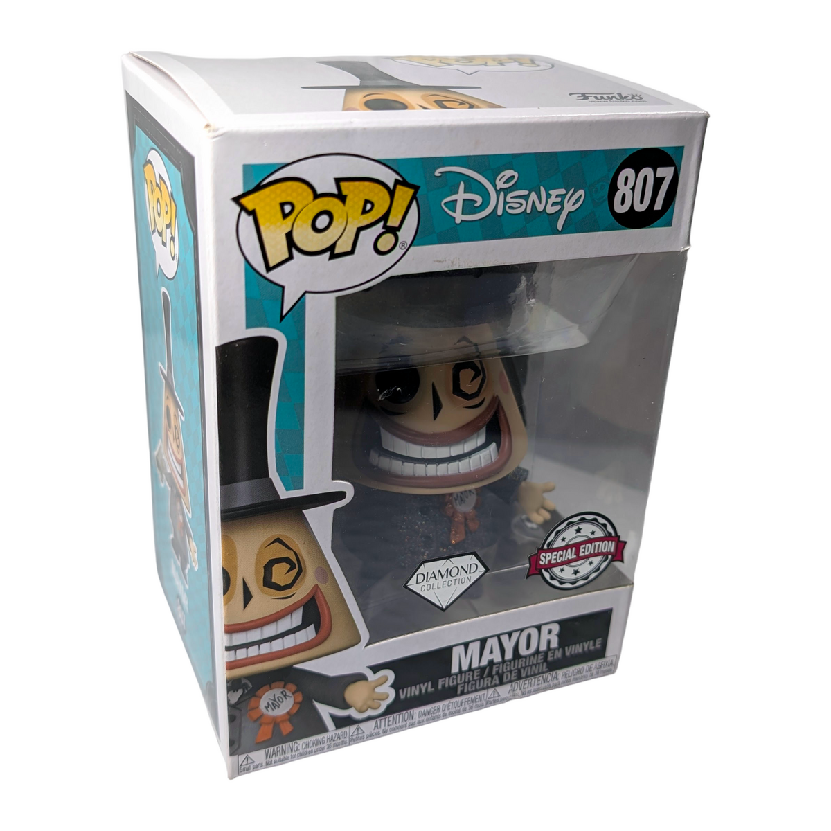 A vinyl figure made for fans of the franchise. Condition notes: Scratch on back; Dent on bottom edge. This Mayor POP! comes from The Nightmare Before Christmas, a film known for blending Halloween and Christmas themes into a single cult classic. The Diamond Collection finish adds extra visual texture, making this version stand out nicely on display. Well suited to collectors who prioritise the figure itself and plan to display it rather than keep it boxed.