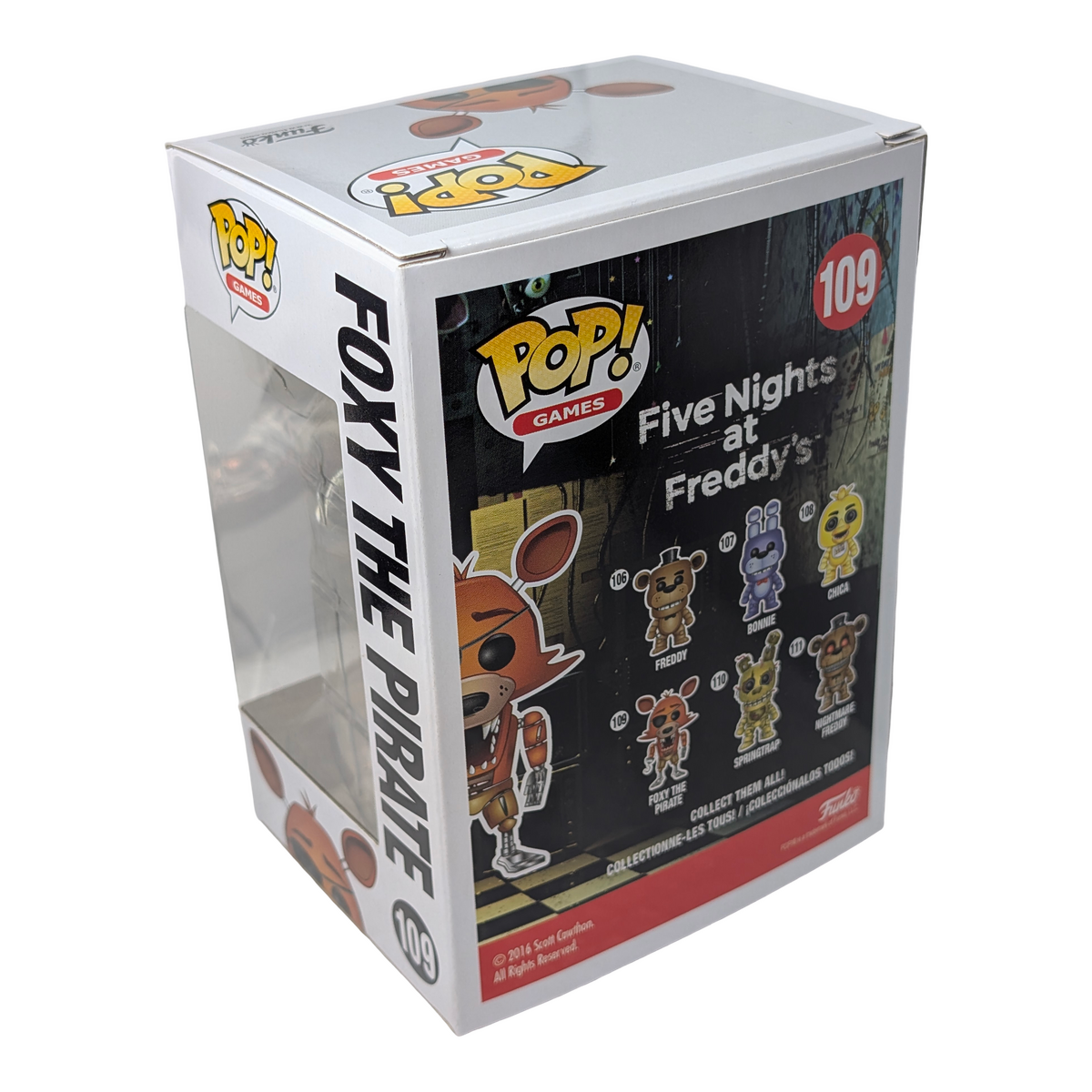 This Funko POP! Games figure features Foxy the Pirate from Five Nights at Freddy's, captured in his signature action pose and ready for display. Condition notes: Small corner tear, front bottom of box. The vinyl figure itself is undamaged and ideal for collectors who are happy to trade box perfection for a sharper price. A solid addition to any FNAF or gaming-themed collection.