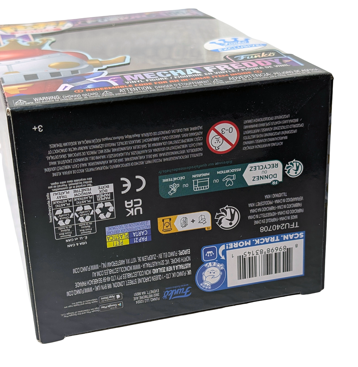 A solid addition for fans building out a themed collection. Condition notes: Damage to top corner of box. Freddy Funko is the long-standing mascot of Funko and a familiar face across conventions, exclusives, and special releases. This Funko Fusion POP! Games Exclusive presents Freddy in Mecha Freddy form, tying into the Funko Fusion universe and featuring light-reactive display elements. A strong option for display-first collectors where packaging condition is not the priority.