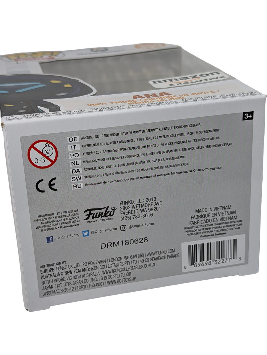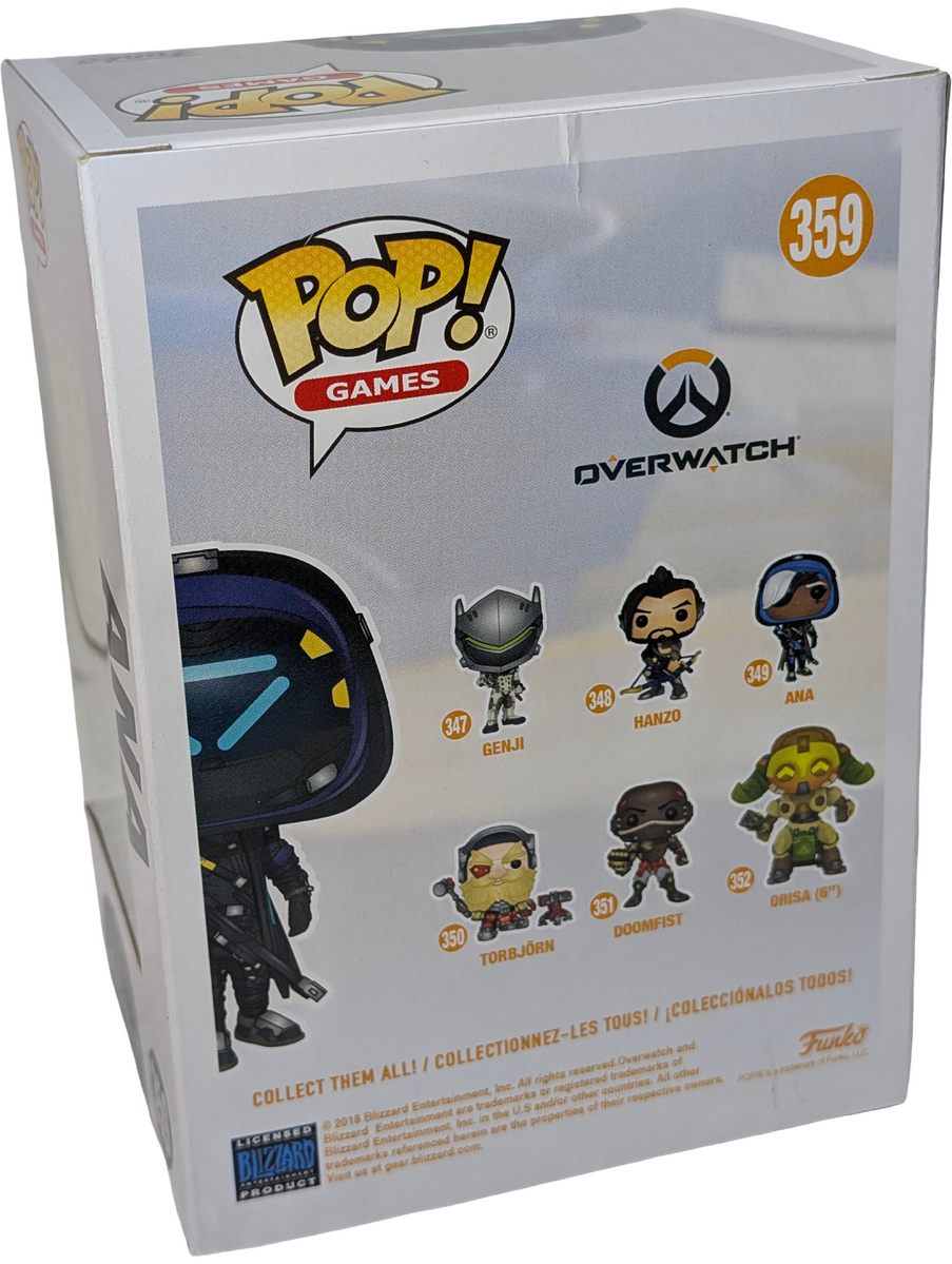 This figure brings character presence without relying on a pristine box. Condition notes: Small creases to back and top corner of box. This vinyl figure features Ana from Overwatch, shown in her masked appearance and equipped with weapons. Ana is widely recognised by fans as one of Overwatch's original support heroes, known for her calm precision and tactical role on the battlefield. This item is offered as a non-mint boxed collectible due to minor box creases, while the figure itself remains suitable for shelf or cabinet display.