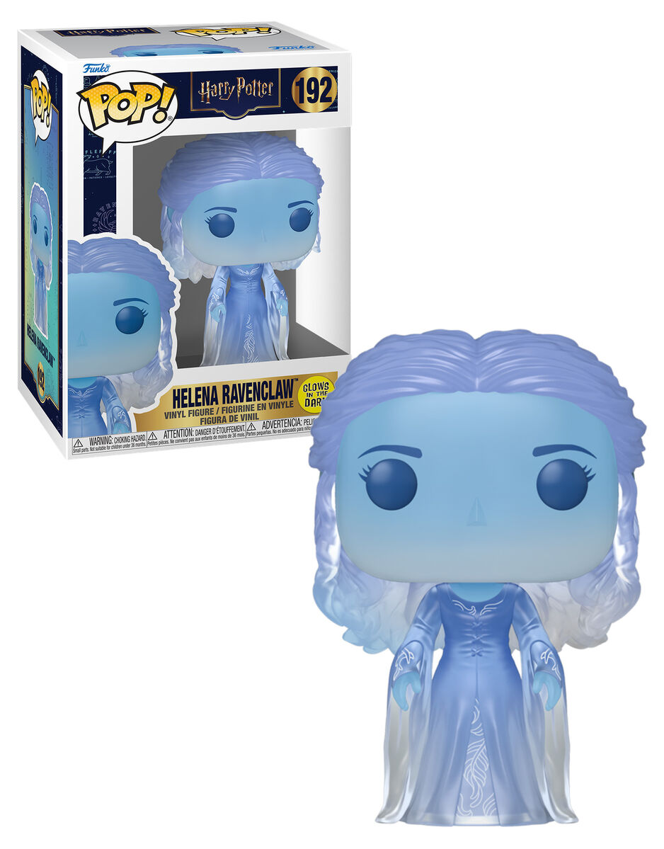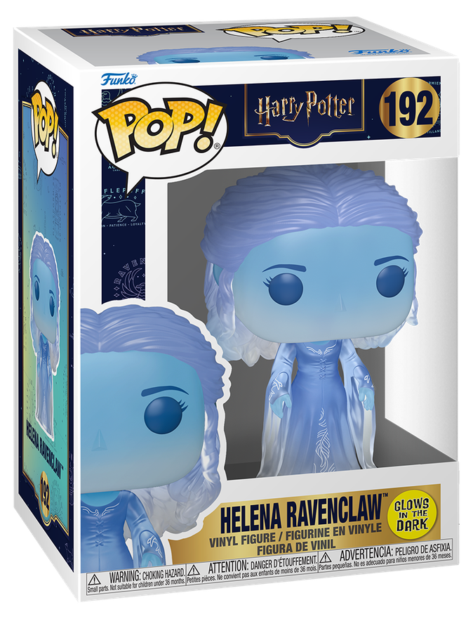 Designed for display, whether boxed or unboxed. This POP! Harry Potter #192 Helena Ravenclaw (Glows In The Dark) captures the character also known as the Grey Lady. Helena Ravenclaw is recognised by fans as the ghost of Ravenclaw House, adding a spectral presence to the Hogwarts story. Rendered in multi-coloured vinyl with a glow-in-the-dark feature, this POP! Standard figure brings an extra visual element to your shelf. It fits naturally alongside other Hogwarts characters or within a dedicated Harry Potter collection.