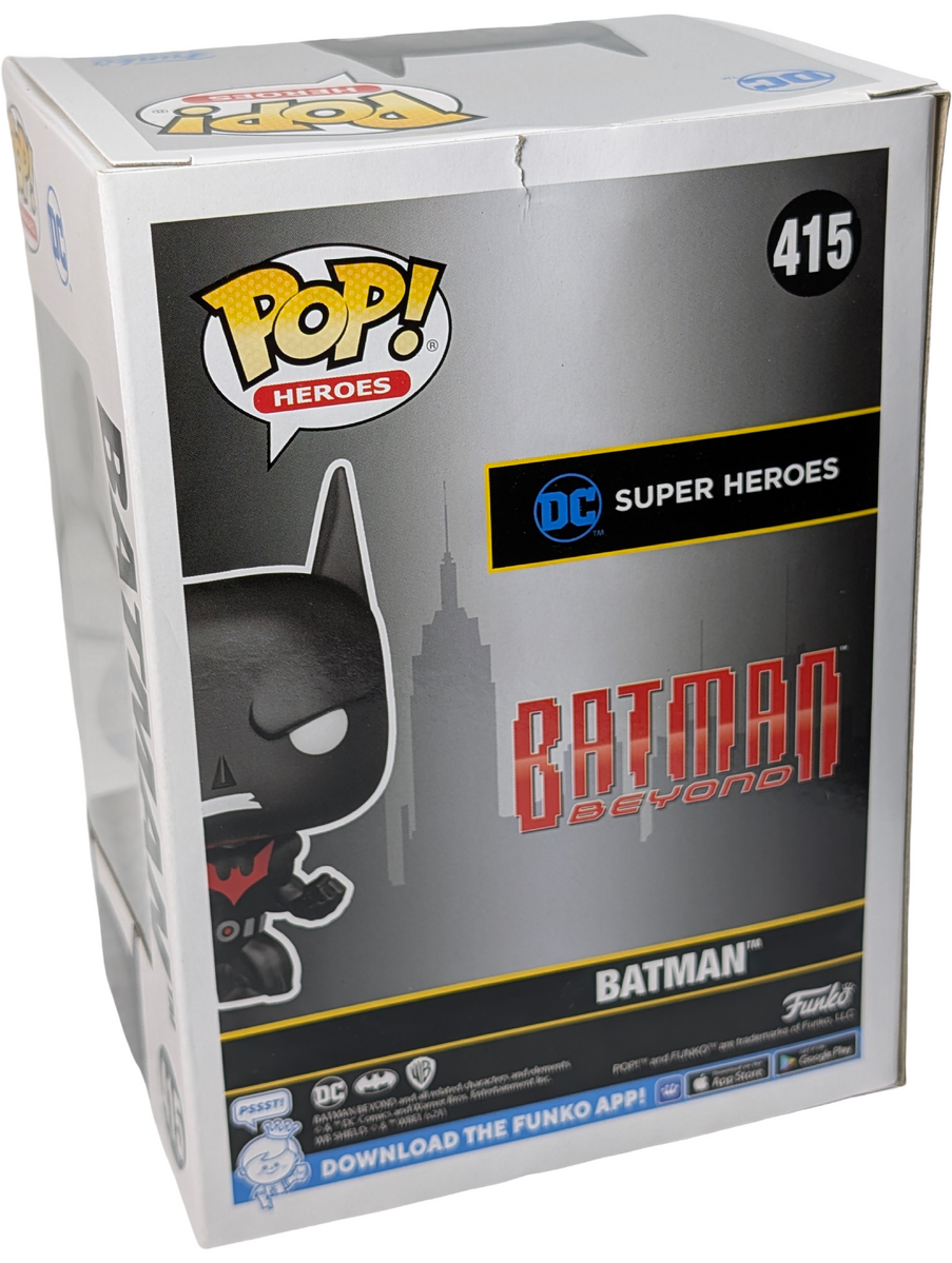 A collectible that fits neatly into any pop culture display. Condition notes: Dent to top and back of box. This Funko POP! Heroes figure features Batman in a crouching pose from Batman Beyond. Batman Beyond is a fan-favourite animated series that reimagines the Dark Knight in a futuristic Gotham, introducing a new generation to the Batman legacy. This item is a non-mint boxed collectible due to dents to the top and back of the box. The figure itself remains suitable for display.