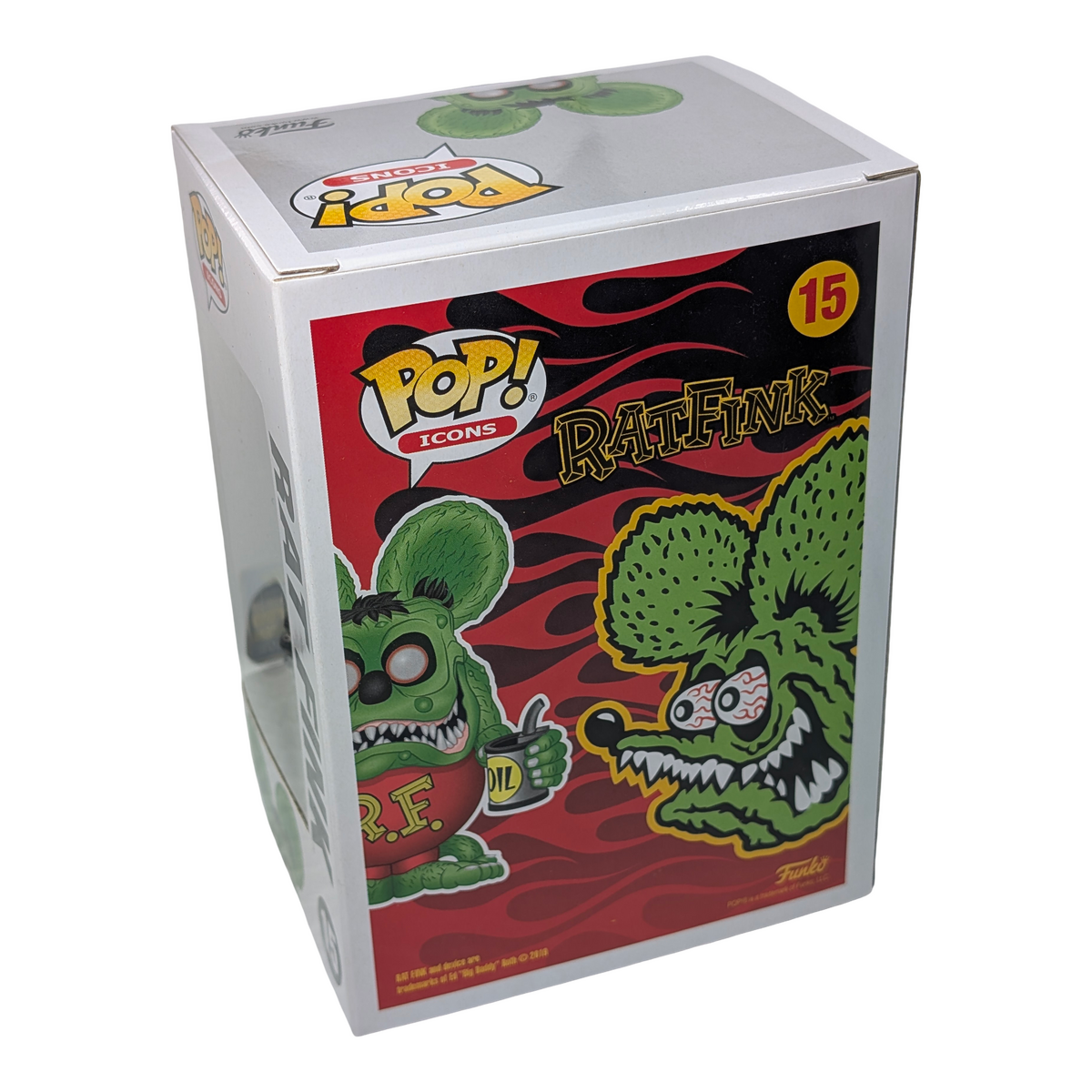Meet Ratfink in shiny silver chrome form. This POP! Icons Ratfink #15 Silver Chrome Variant features the iconic troublemaker holding an oil can and spanner, ready to stand out in any collection. Condition notes: small crease on top This is a non-mint collectible with packaging imperfections, but the figure itself remains undamaged and display-ready. Ideal for collectors who care more about the figure than a flawless box.