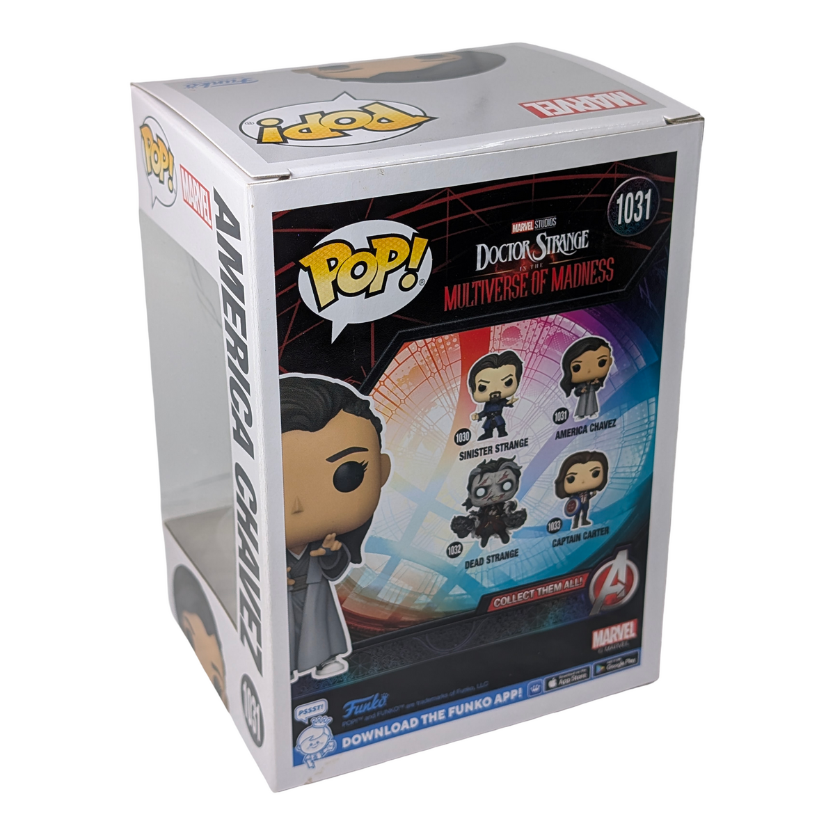 This Funko POP! Marvel figure features America Chavez in her robe, as seen during her training scenes in Doctor Strange in the Multiverse of Madness. Condition notes: light factory crease on back Made from vinyl and designed in the classic POP! style, this figure captures America Chavez in an action pose with detailed sculpting and bold colours. Ideal for collectors who are happy to save on non-mint packaging while still getting the same undamaged figure inside.