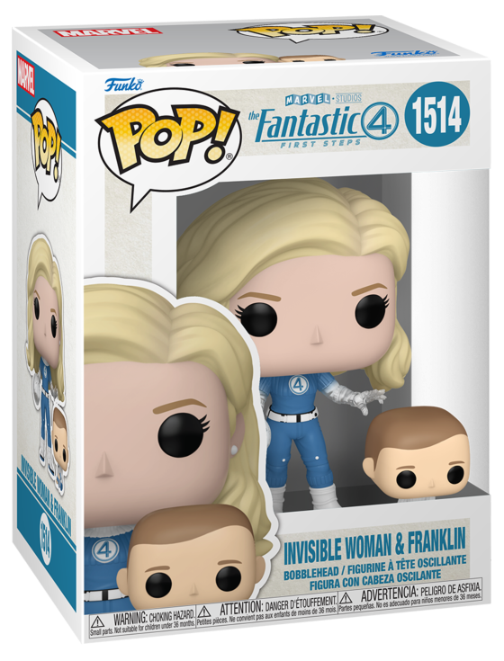 • Funko POP! Marvel figure featuring Invisible Woman and Franklin