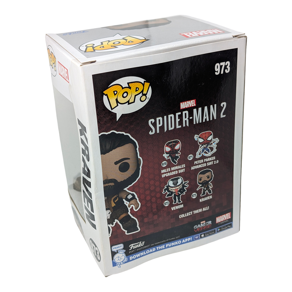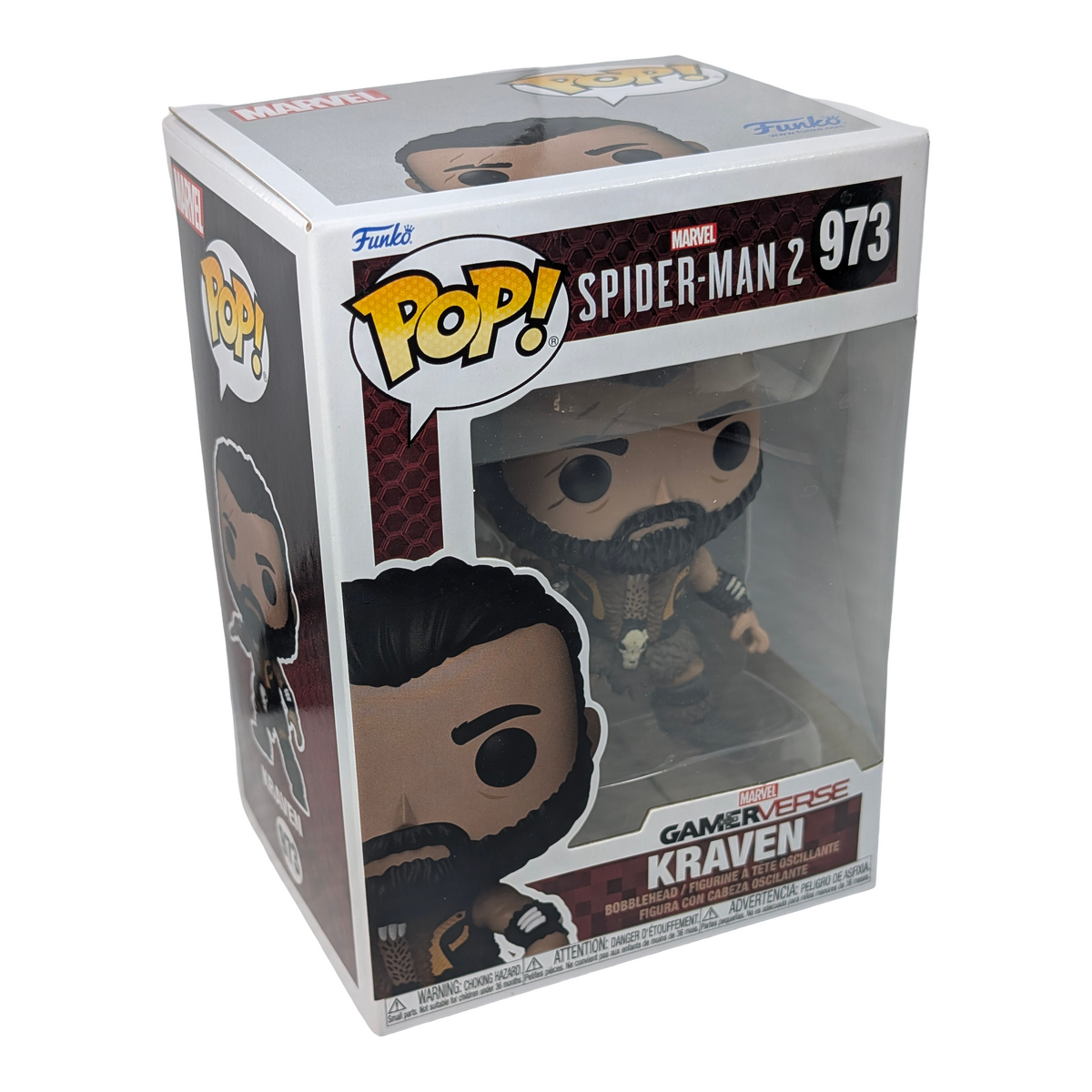 Funko POP! Marvel Spider-Man Kraven brings the iconic hunter from the Marvel Gamerverse into vinyl form, captured in a dynamic action pose with blade. Condition notes: moisture/condensation damage to cardboard; wide/soft dents on front and back of box This collectible figure is ideal for display and comes from the Spider-Man video game series, making it a great addition for Marvel and POP! collectors who don't mind imperfect packaging.