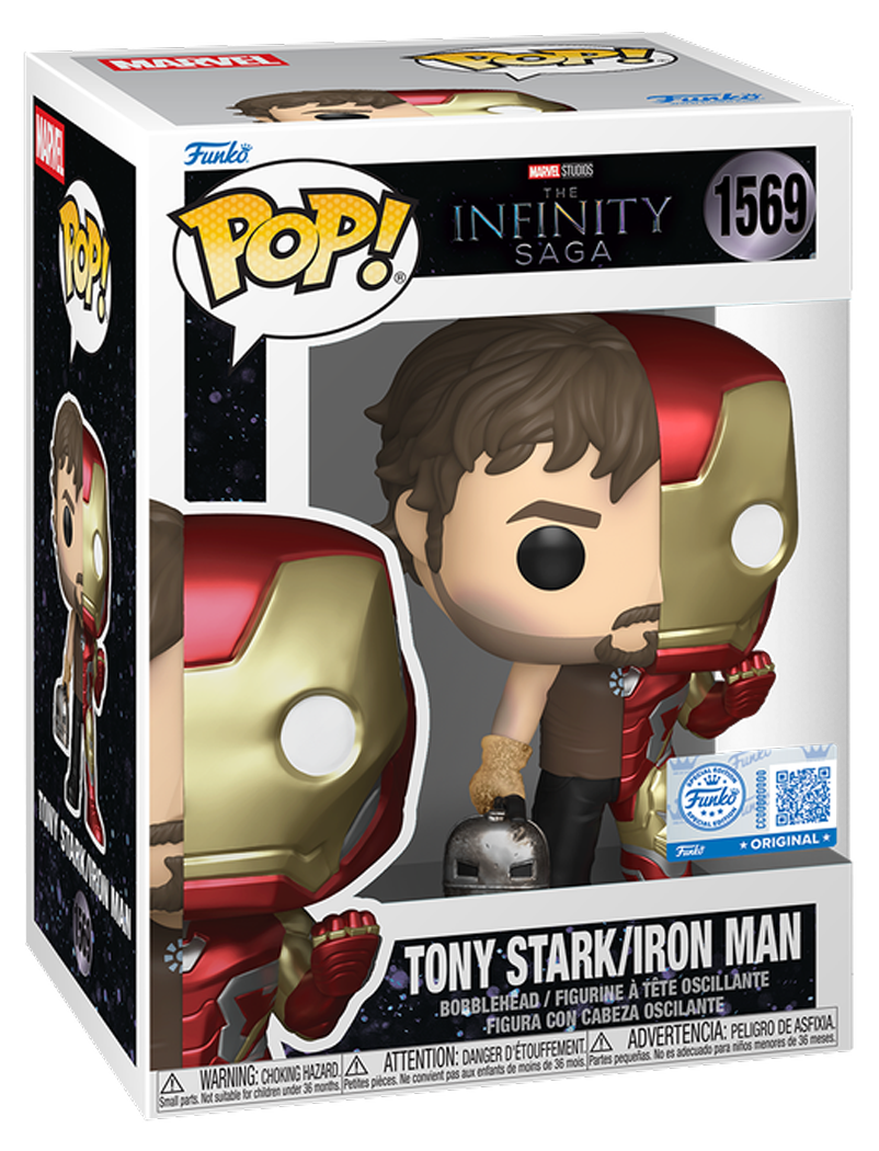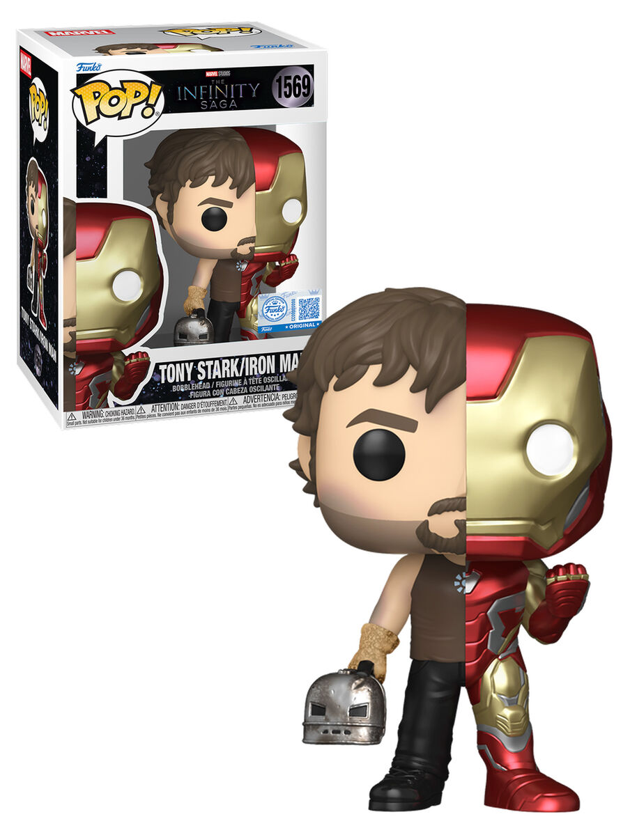 Two moments, one legend. This Funko POP! Marvel The Infinity Saga Tony Stark / Iron Man #1569 Splits Series brings together Iron Man in his Mk IV suit and Tony Stark in his cave-built beginnings, complete with the Mk I helmet in hand. A clever split design that captures both the hero and the man behind the armour, perfect for Marvel collectors.
