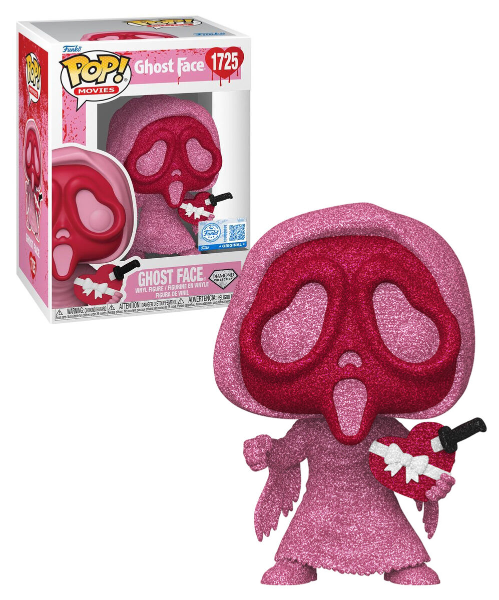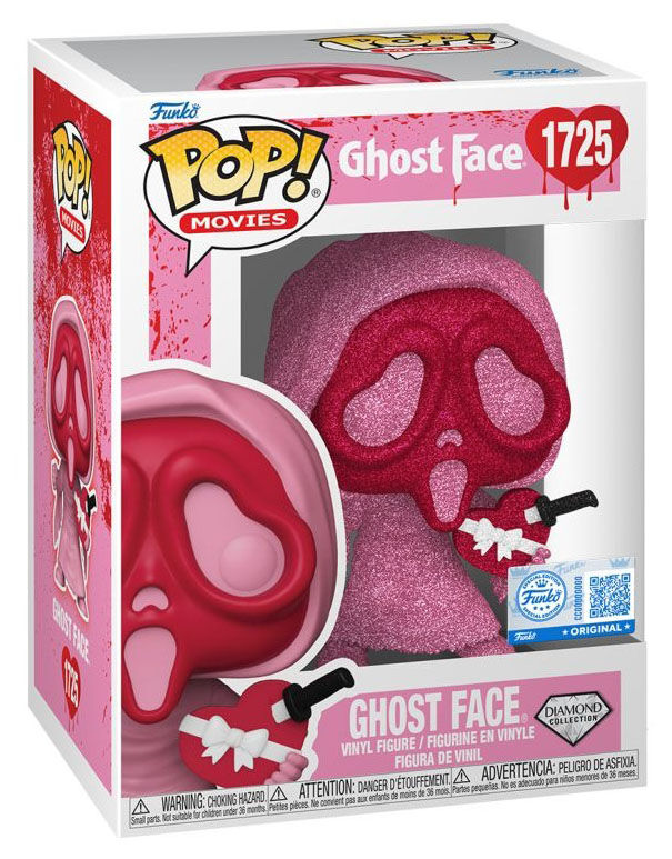 A neat option for collectors expanding a specific range. This POP! Movies #1725 Ghost Face (Diamond Collection) figure draws from the Scream franchise, where Ghost Face is known as the masked figure behind the series' suspense-driven storylines. This version was released as a Valentine's Day edition and features the Diamond Collection finish for added visual texture. Produced in multi-coloured vinyl in the standard POP! format, it suits horror and movie-themed displays, whether kept boxed or presented alongside other entries in the range.
