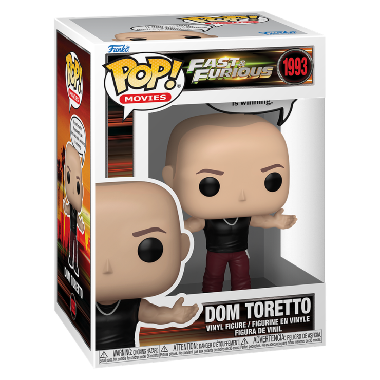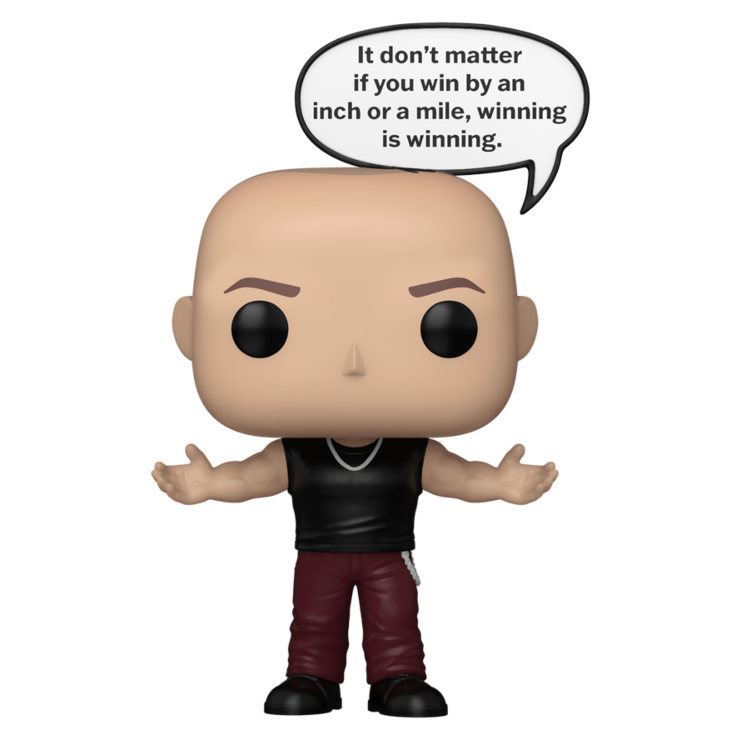 Featuring Dom Toretto, this POP figure draws from the Fast & Furious film series, where the character is known for his focus on family and high-speed street racing. This Pop! Sayings collectible includes a speech bubble with the quote, "It don't matter if you win by an inch or a mile, winning is winning."