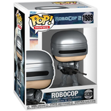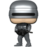 RoboCop is the cybernetic law enforcement officer from the RoboCop films, known for his distinctive armour and presence in science-fiction cinema. This POP! Movies #1989 figure presents RoboCop from RoboCop 2 in a stylised metallic finish, posed with an automatic weapon for a dynamic display look.