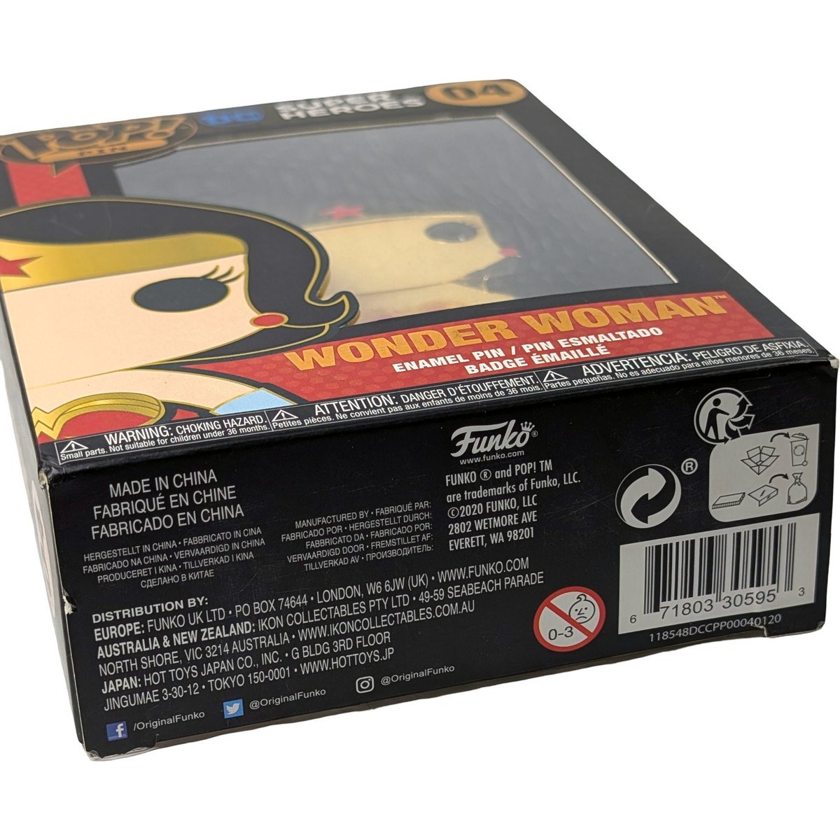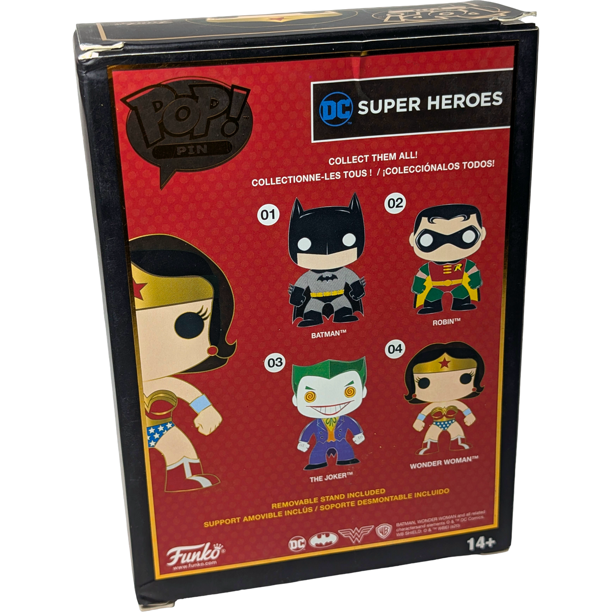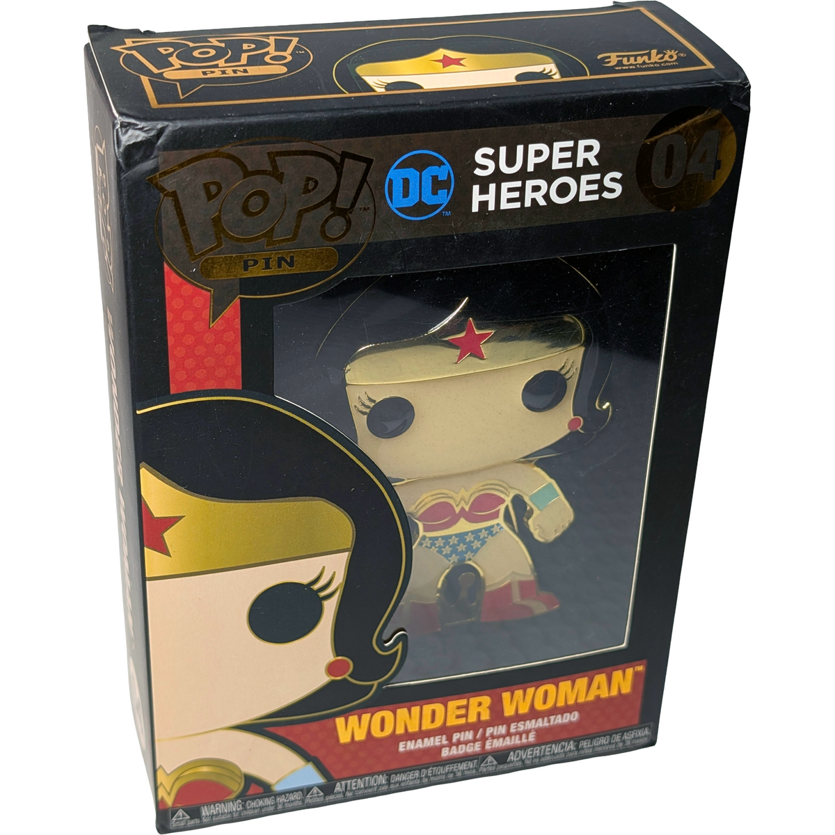Designed for display, whether boxed or unboxed. Condition notes: Multiple damage issues with box. This Funko POP! Pin features Wonder Woman in her classic costume, a look that has defined the character since her earliest comic appearances. Wonder Woman is widely recognised as one of DC's most iconic superheroes and a founding member of the Justice League. With noticeable packaging damage, this item is best suited to collectors who prioritise the pin itself rather than box condition.