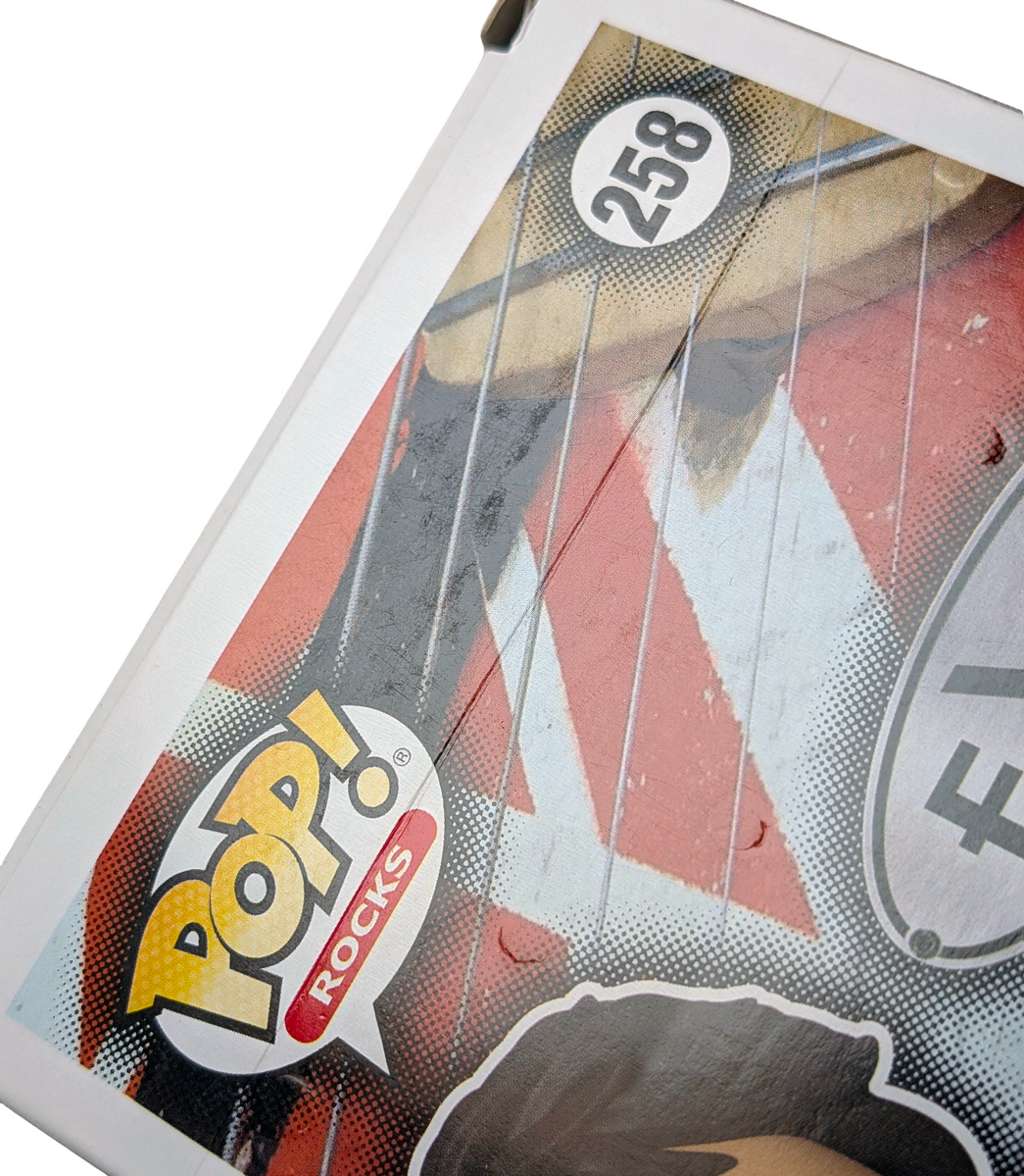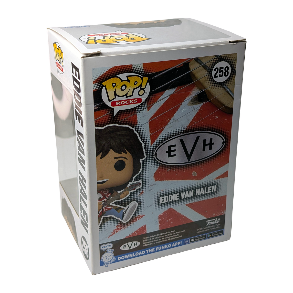 Designed for display, whether boxed or unboxed. Condition notes: factory crease around top of box. Eddie Van Halen is widely regarded as one of the most influential guitarists in rock history, known for his energetic stage presence and groundbreaking playing style. This POP! Rocks figure captures him mid-jump, guitar in hand, reflecting that unmistakable live-performance energy. A strong option for music fans and display-first collectors where box condition is not the main concern.