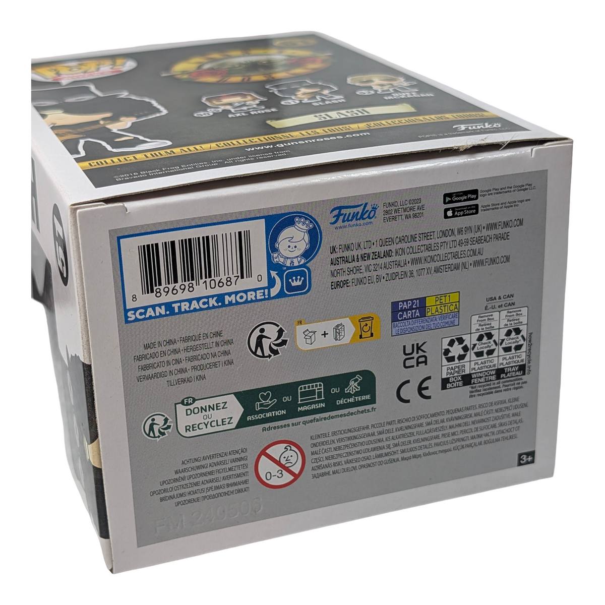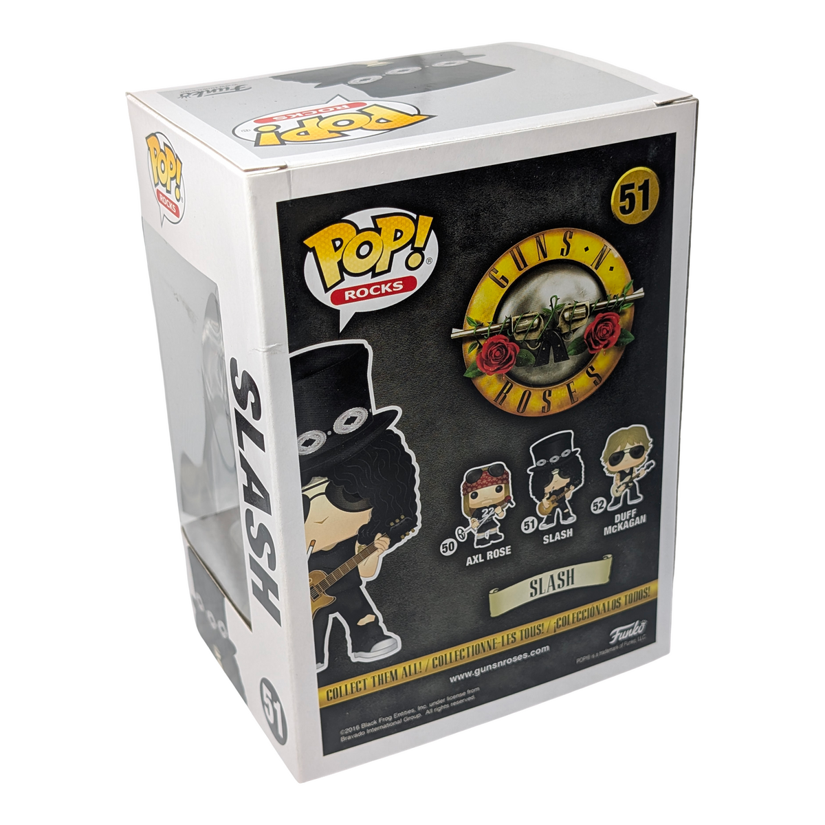 This Funko POP! Rocks figure captures Slash from Guns N Roses in classic vinyl form, complete with his signature guitar and stage-ready pose. Condition notes: Corner crease on back of box. This is a non-mint item with packaging imperfections, but the figure itself remains undamaged and ideal for display by music fans and collectors.