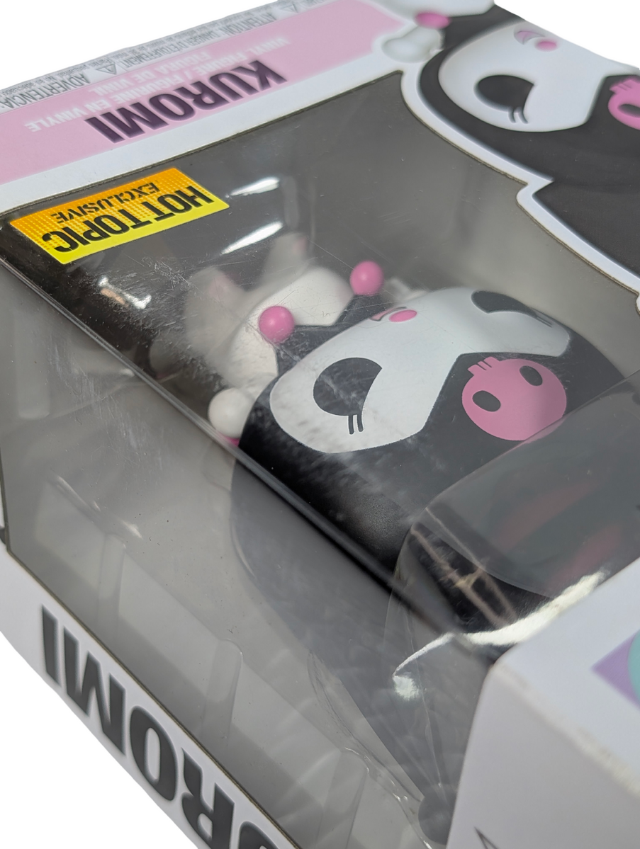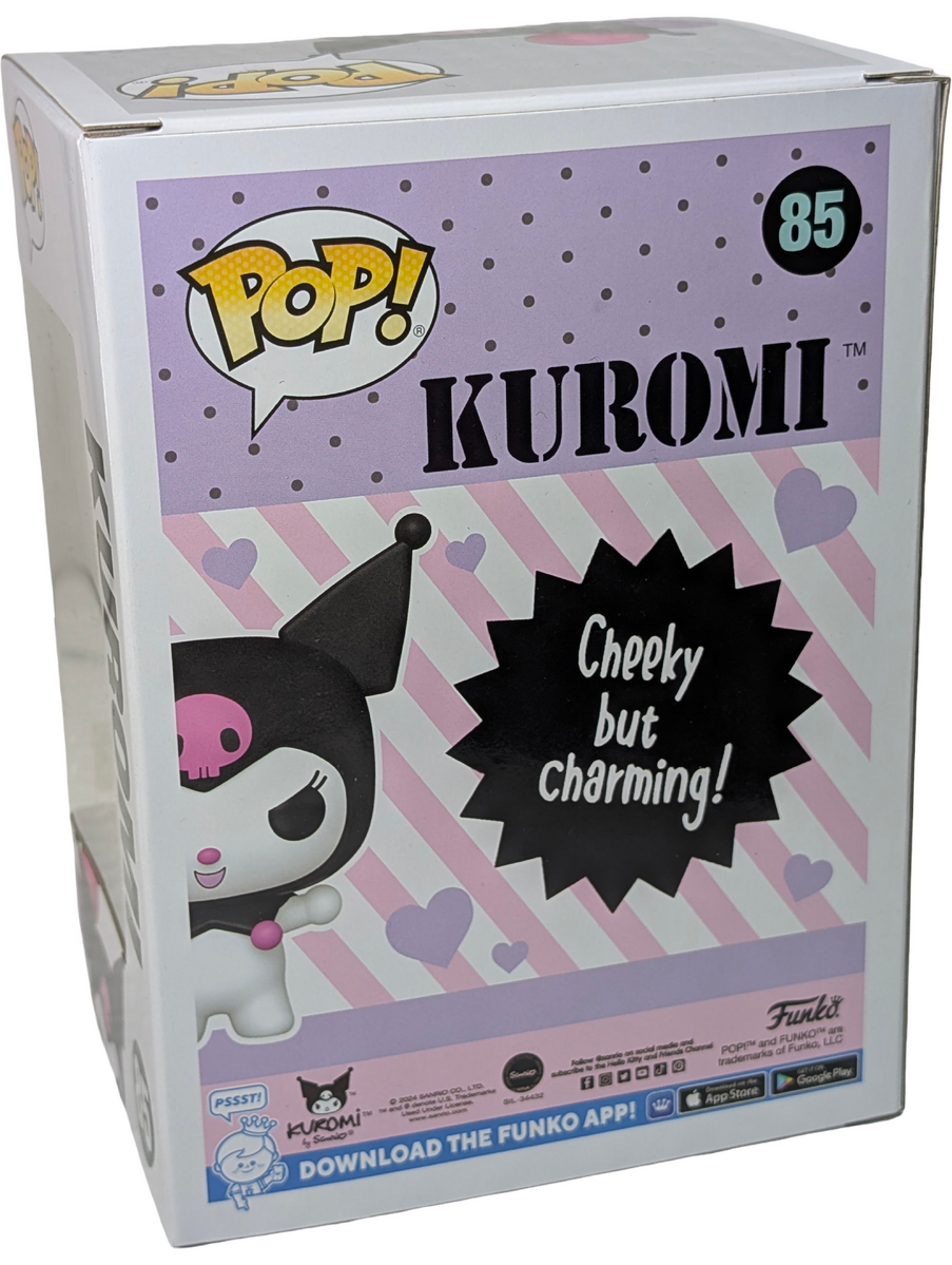 A solid choice for collectors who enjoy out-of-box display. Condition notes: Shelf wear. This vinyl figure features Kuromi, shown holding balloons in a playful pose. Kuromi is widely recognised as one of Sanrio's most mischievous characters, known for her cheeky personality and punk-inspired style. This item is offered as a non-mint boxed collectible due to shelf wear on the packaging, while the figure itself remains well suited to shelf or cabinet display.