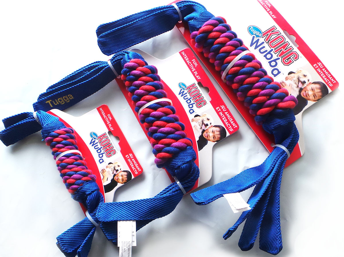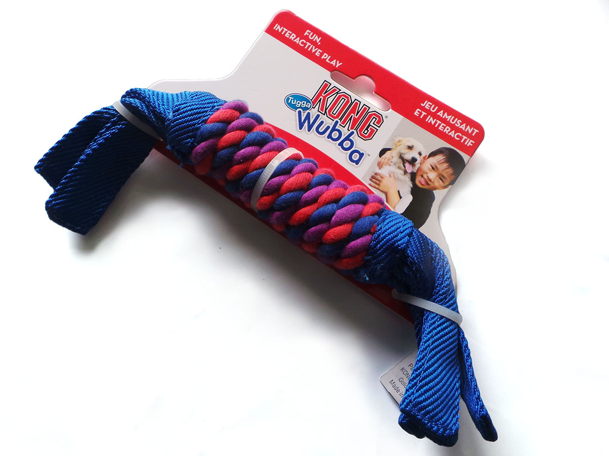 The KONG Tugga Wubba is a fun, interactive tug and toss toy made with durable reinforced nylon and tails on both ends for twice the shaking fun. The tails make it easy to pick up, throw or tug. Can be used by two dogs at once.