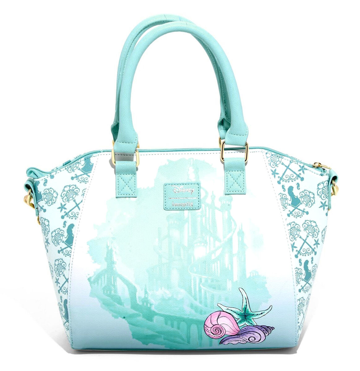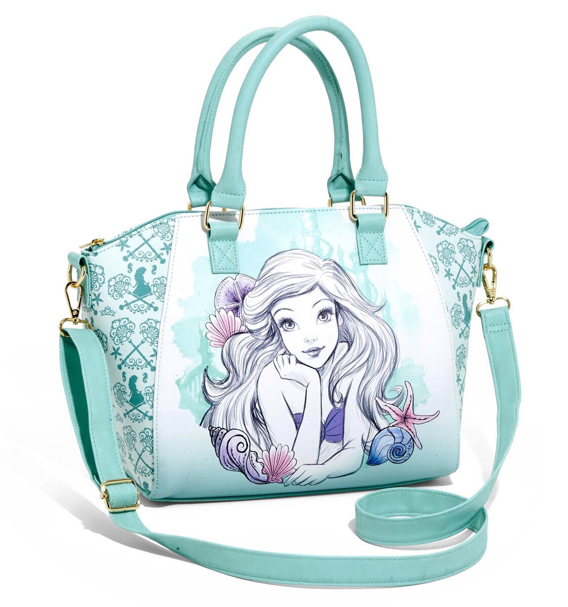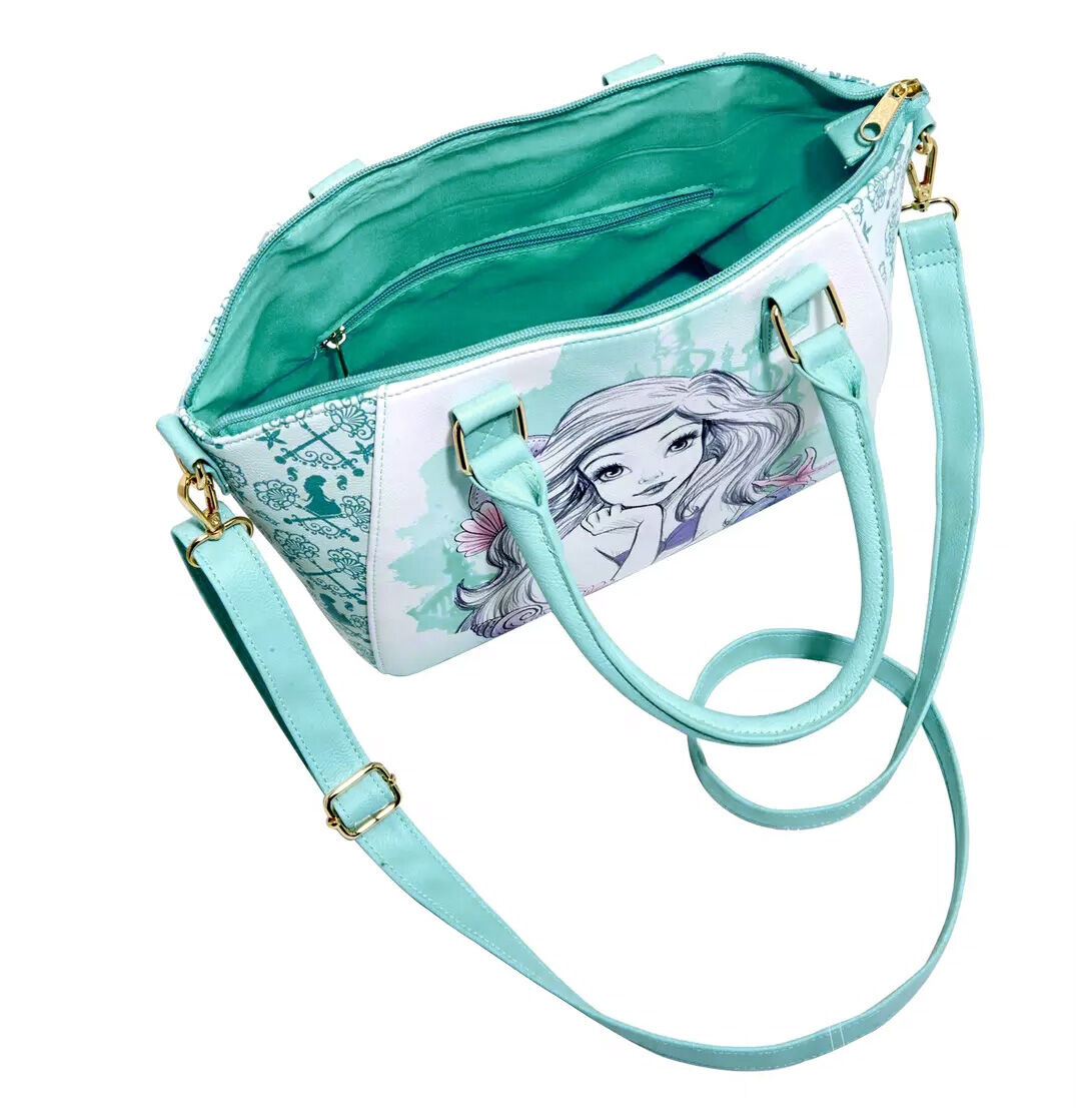 This satchel bag features Ariel from Disney's The Little Mermaid in a soft green watercolour-style design, offering a distinctive take on a well-known character. Ariel, the adventurous mermaid princess, is brought to life through a more artistic and subtle aesthetic while still remaining instantly recognisable.