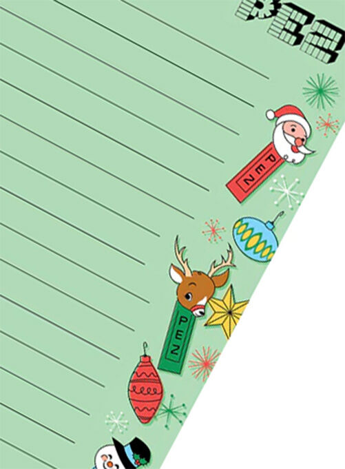 Jot down your notes and ideas in style with the PEZ Retro Christmas Note Pad! This notepad features fun PEZ Retro Christmas PEZ designs and 25 sheets per pad. Perfect for jotting down notes, reminders, and PEZ Wish List items.