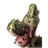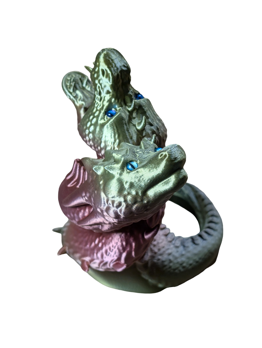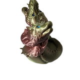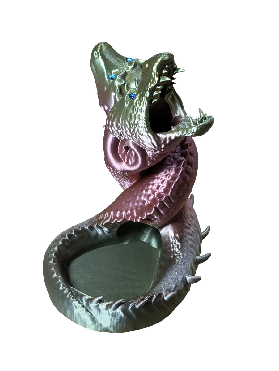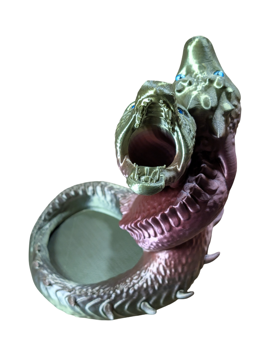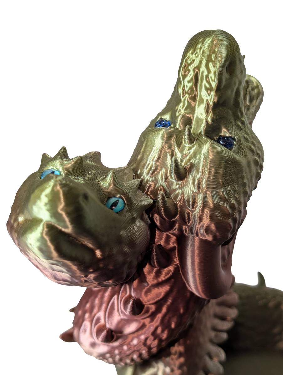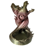 Bring mystical elegance to your game night with the Twin Dragons Dice Tower, a breathtaking 3D-printed accessory. Unlike battling beasts, these two majestic dragons are gracefully intertwined, their forms flowing together to create a unified and captivating structure that symbolises harmony on your gaming table. This exclusive edition is crafted with a mesmerizing Bronze Rainbow Silk gradient filament. The premium metallic finish shimmers, shifting through rich bronze hues to subtle rainbow colors as you move it, making every piece a unique focal point.