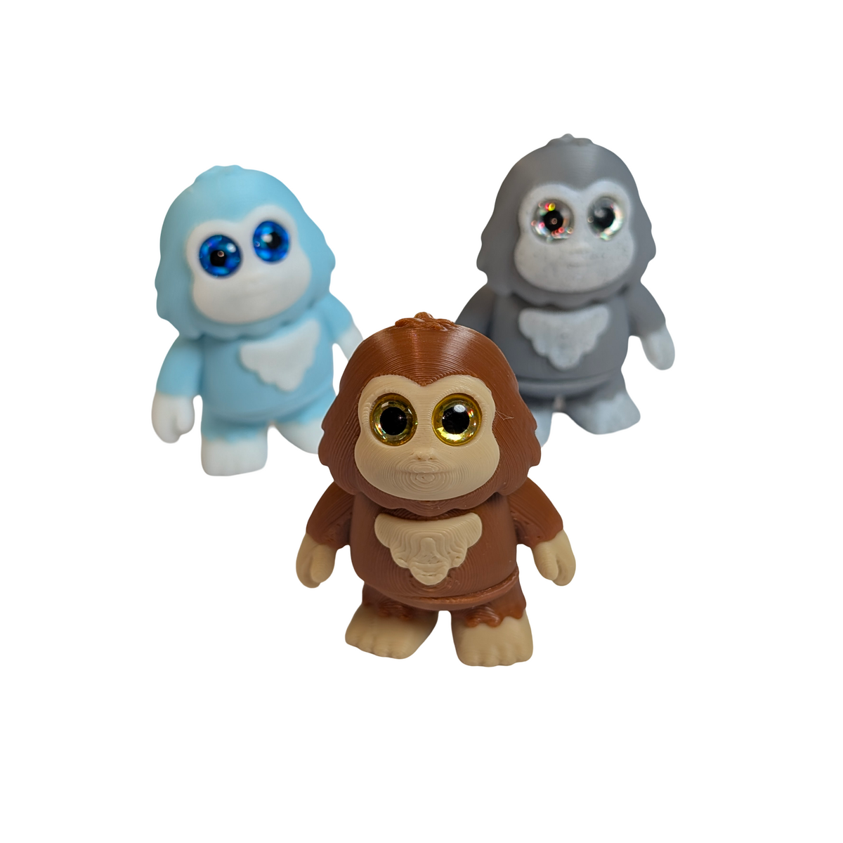 Part of the Heebie-Chibis series, this set includes 3 articulated wildman figure magnets, each in a different colourway representing a different incarnation of wildman mythology. The set includes Blue-White for the Yeti, Brown-Tan for the Sasquatch-Bigfoot, and Grey-Marble for the Japanese Hibagon Mountain Man, with each figure featuring 2 points of articulation.