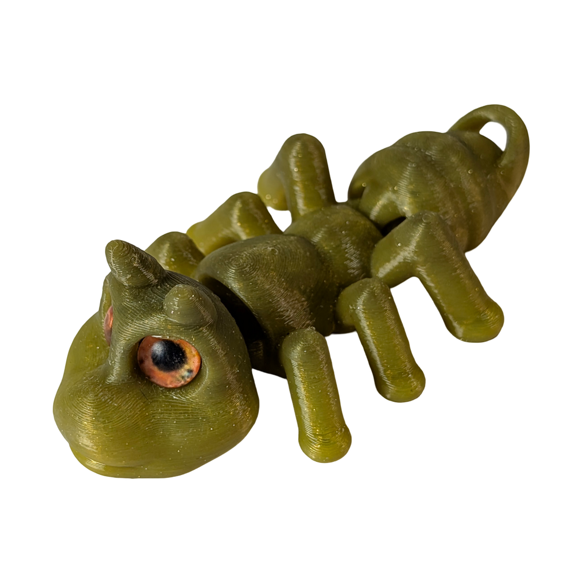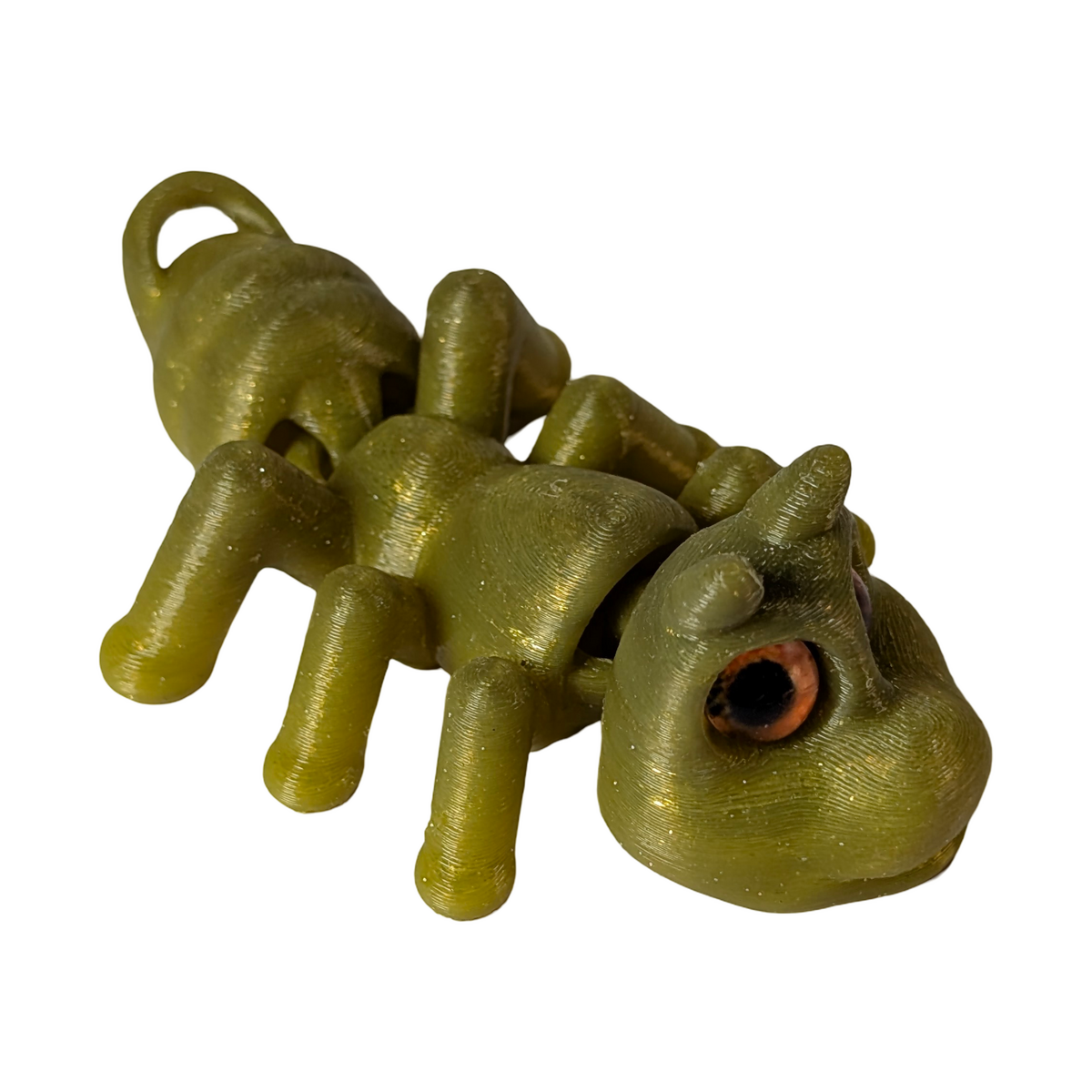 Small, busy, and surprisingly charming . This articulated ant keyring and bag charm is 3D printed in translucent PLA with a multi-coloured finish that lets the light through just enough to catch the eye. Finished with hand-applied eyes, it's lightweight, compact, and easy to clip onto keys, backpacks, or everyday bags. A tiny companion with big personality - thankfully without the picnic-stealing habits. From Australia.