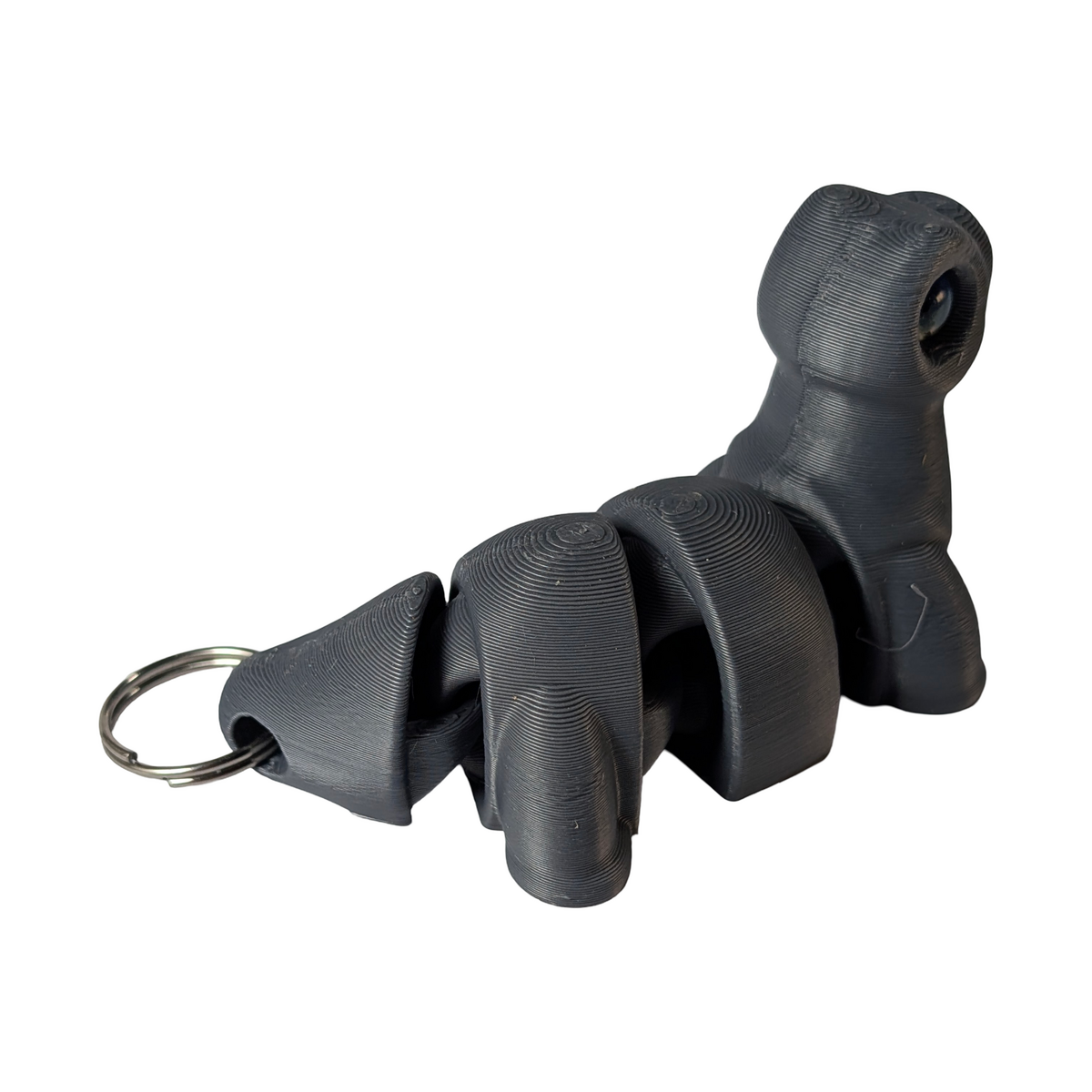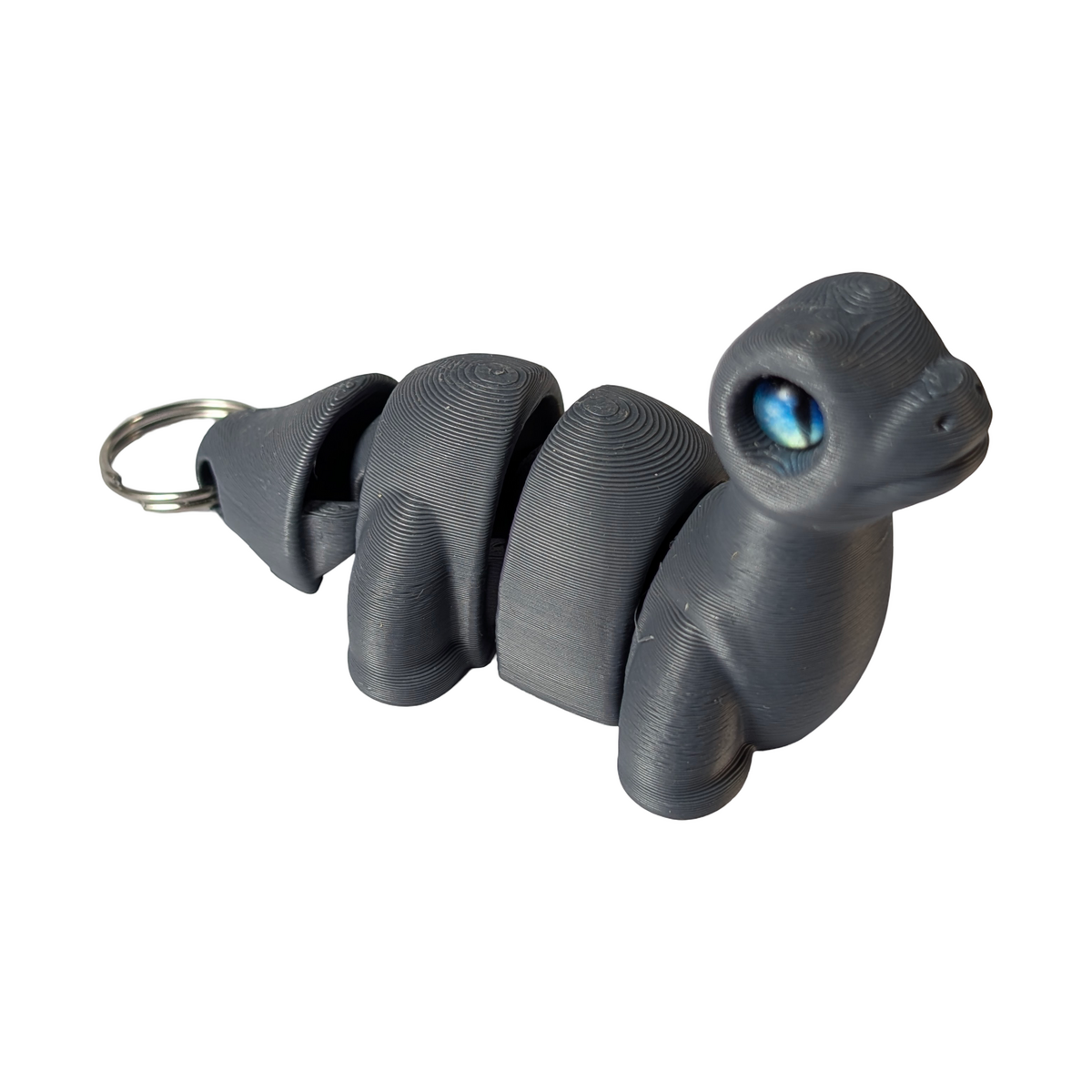 Big neck, gentle soul . This articulated brontosaurus keyring and bag charm is 3D printed in matte grey PLA with hand-applied eyes. Lightweight and compact, it's easy to clip onto keys, backpacks, or everyday bags without adding bulk. A calm little dinosaur companion that's more about vibes than roaring. From Australia.