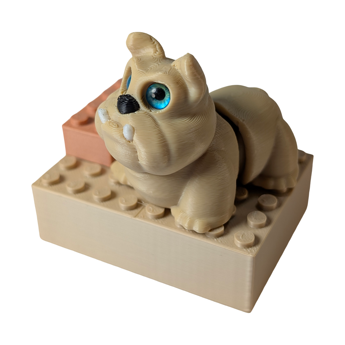 This little bulldog is ready to tag along wherever you go . 3D printed in durable matte PLA, this articulated bulldog keyring and bag charm features hand-applied eyes and a cheerful multi-colour finish. Compact, lightweight, and full of character, it's a fun way to personalise your keys, backpack, or favourite bag. Small enough to stay out of the way, but cute enough to get noticed - a loyal little companion without the walks.