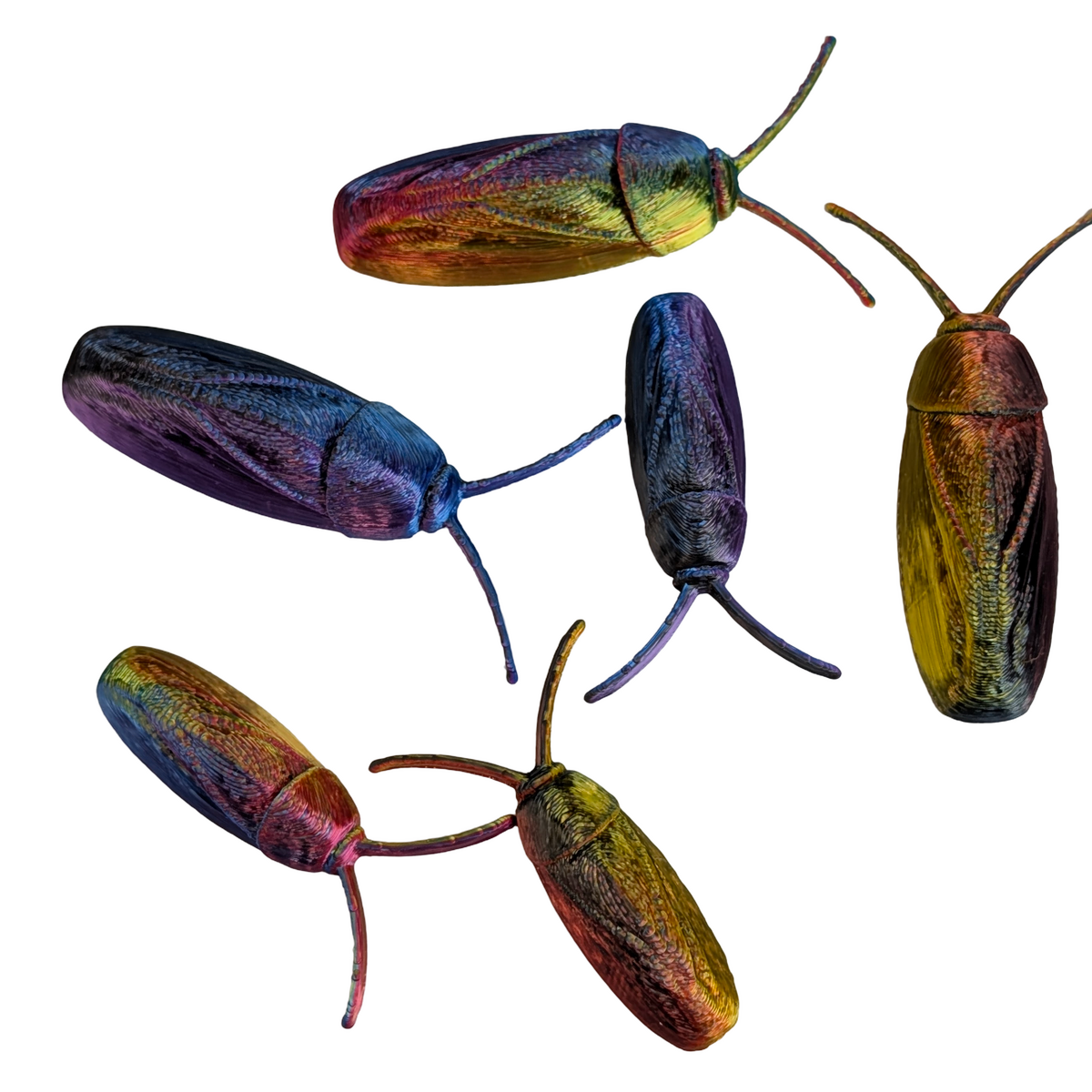 This set includes six cockroach magnets, with three in each of two different sizes. Each piece is designed with a detailed insect-inspired form, highlighting the segmented body and recognisable silhouette of cockroaches, which are known for their adaptability and resilience in a wide range of environments.