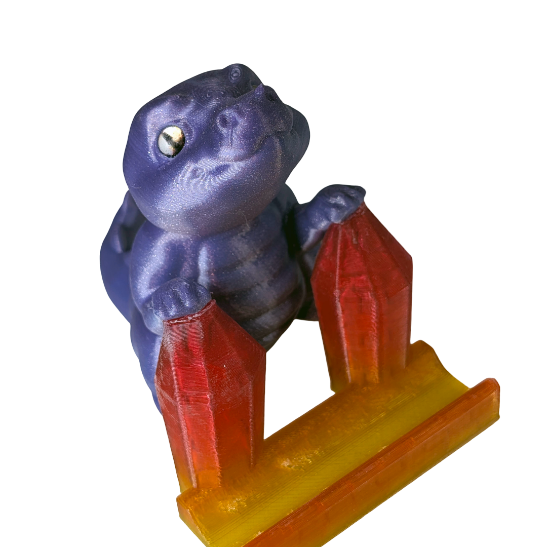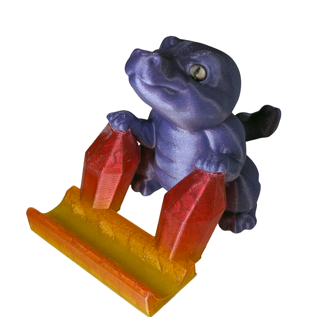 The Crocodile Phone Stand adds a bit of bite to your desk - in a friendly way. Shaped like a cheerful croc, it keeps your phone upright while bringing colour and character to your workspace. 3D printed in lightweight PLA with a purple and rainbow finish, this stand is compact, sturdy, and easy to place wherever you need it. Ideal for video calls, scrolling, or keeping your screen visible while you work, study, or relax.