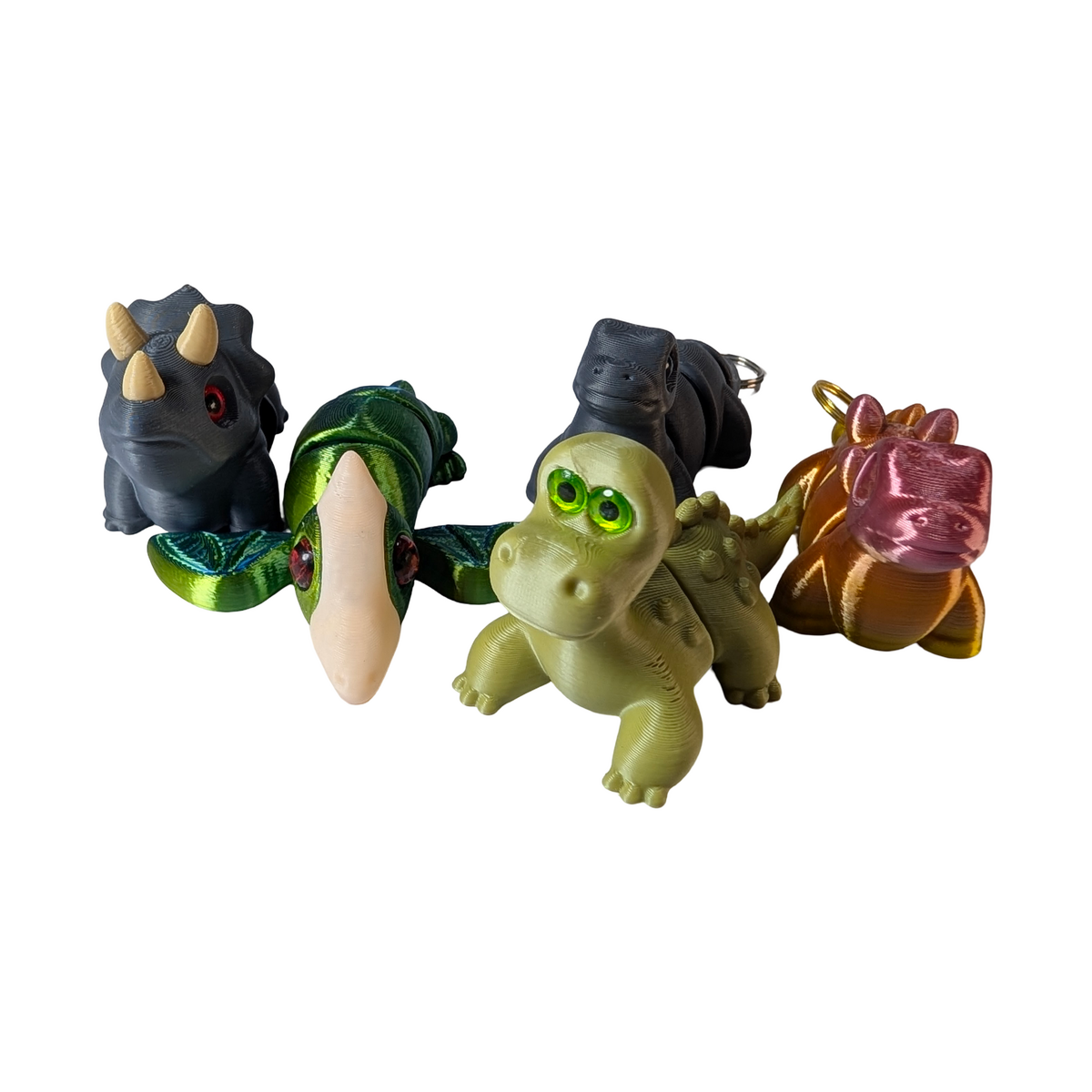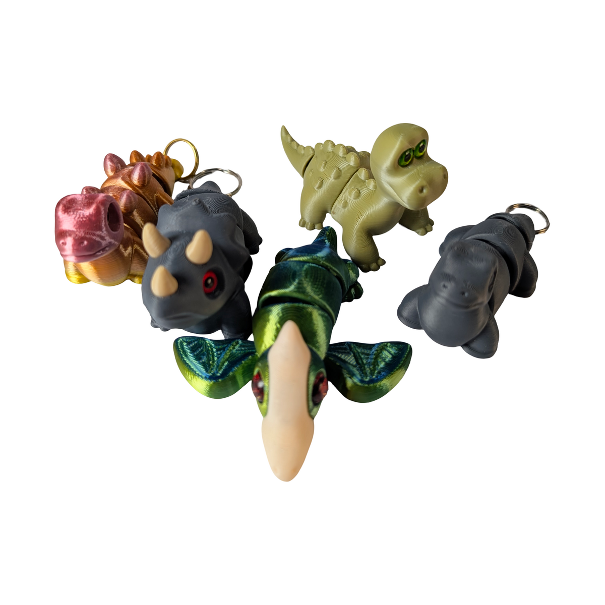 This dinosaur keyring and bag charm multi-pack brings together five specific dino designs in one cheerful prehistoric bundle: Triceratops, Pterodactyl, Stegosaurus, Brontosaurus, and Sauropod. Each piece is 3D printed in multi-colour PLA with articulated details and hand-applied eyes, giving every dinosaur its own personality. Supplied as a fixed set, so you know exactly which dinosaurs are included-no surprises from the fossil record.