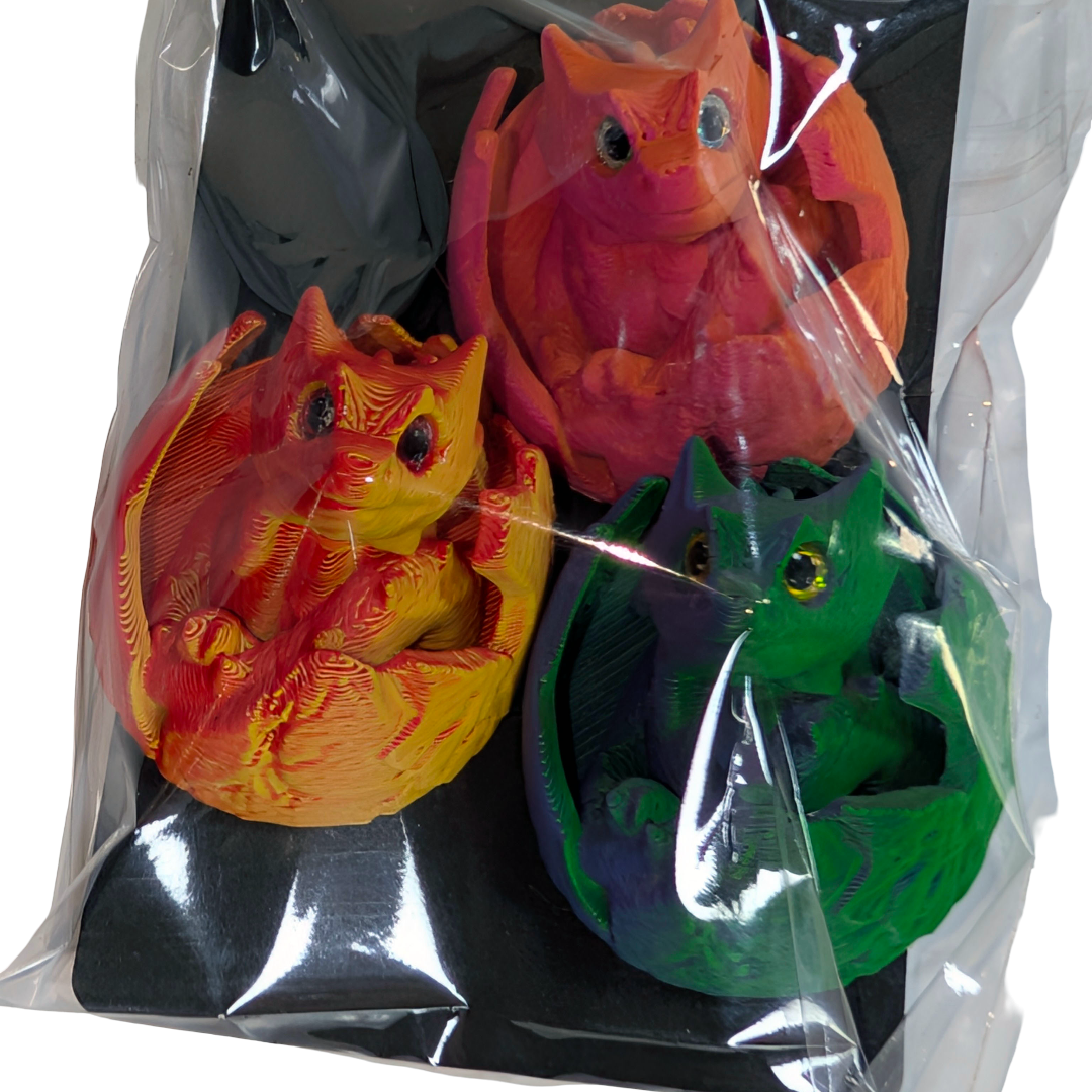 Three tiny dragons, freshly hatched and ready to guard your fridge. This Dragon Hatchlings Magnet Set features three individual hatchlings, each peeking out from its egg with loads of character and detail. 3D printed in lightweight PLA and finished in multi-coloured tones, these magnets make a fun decorative touch for fridges, lockers, or magnetic boards. Small in size, but full of personality-and much tidier than real dragons.