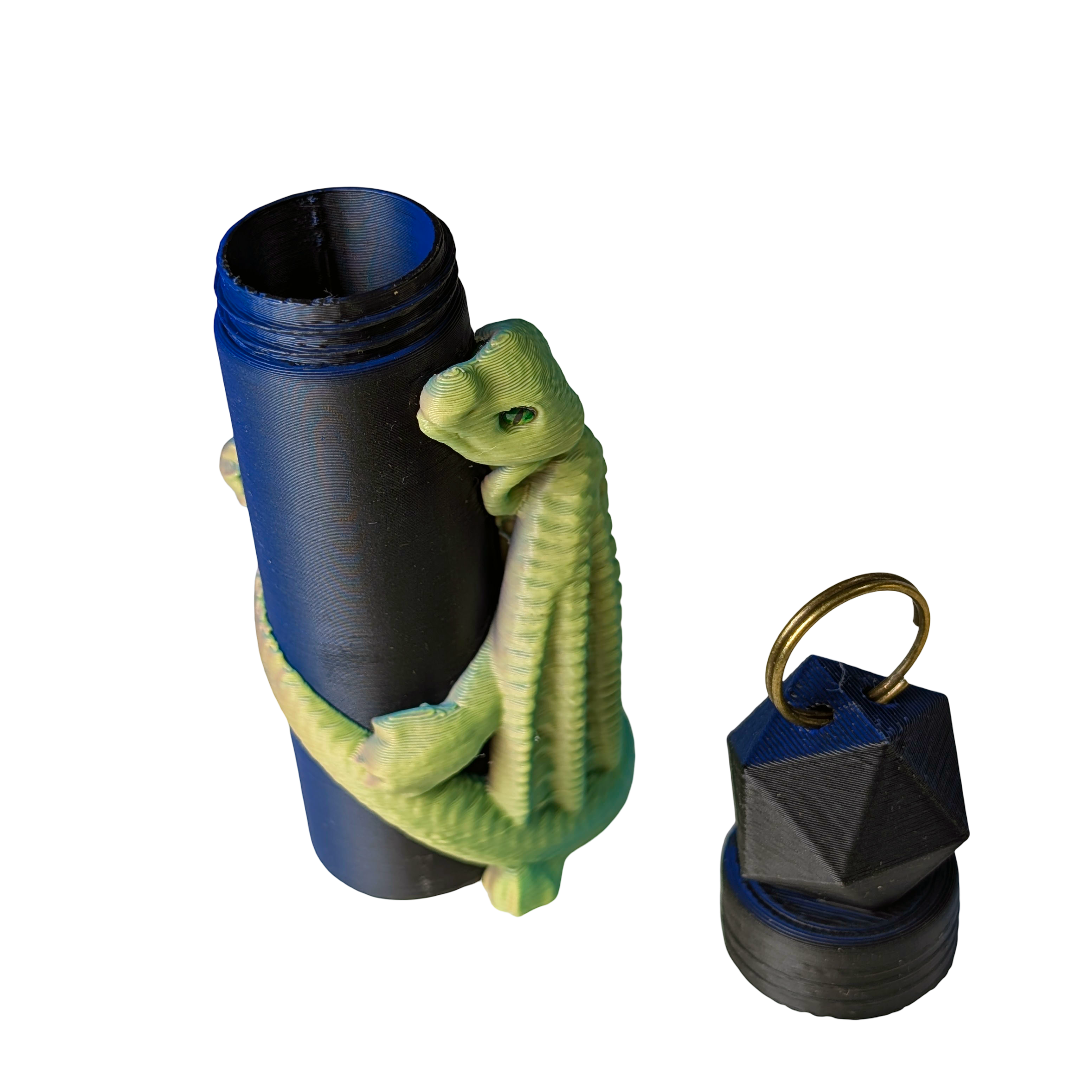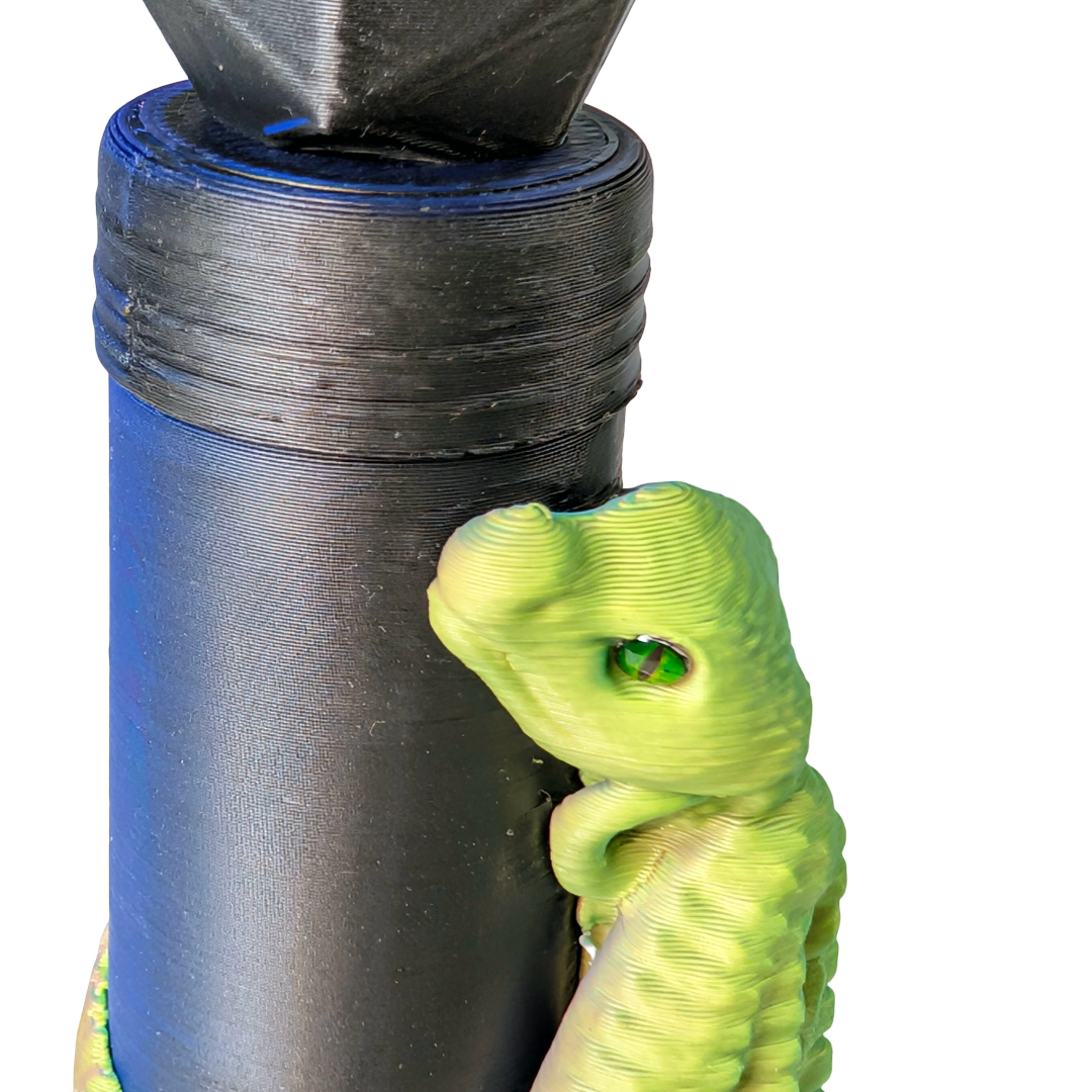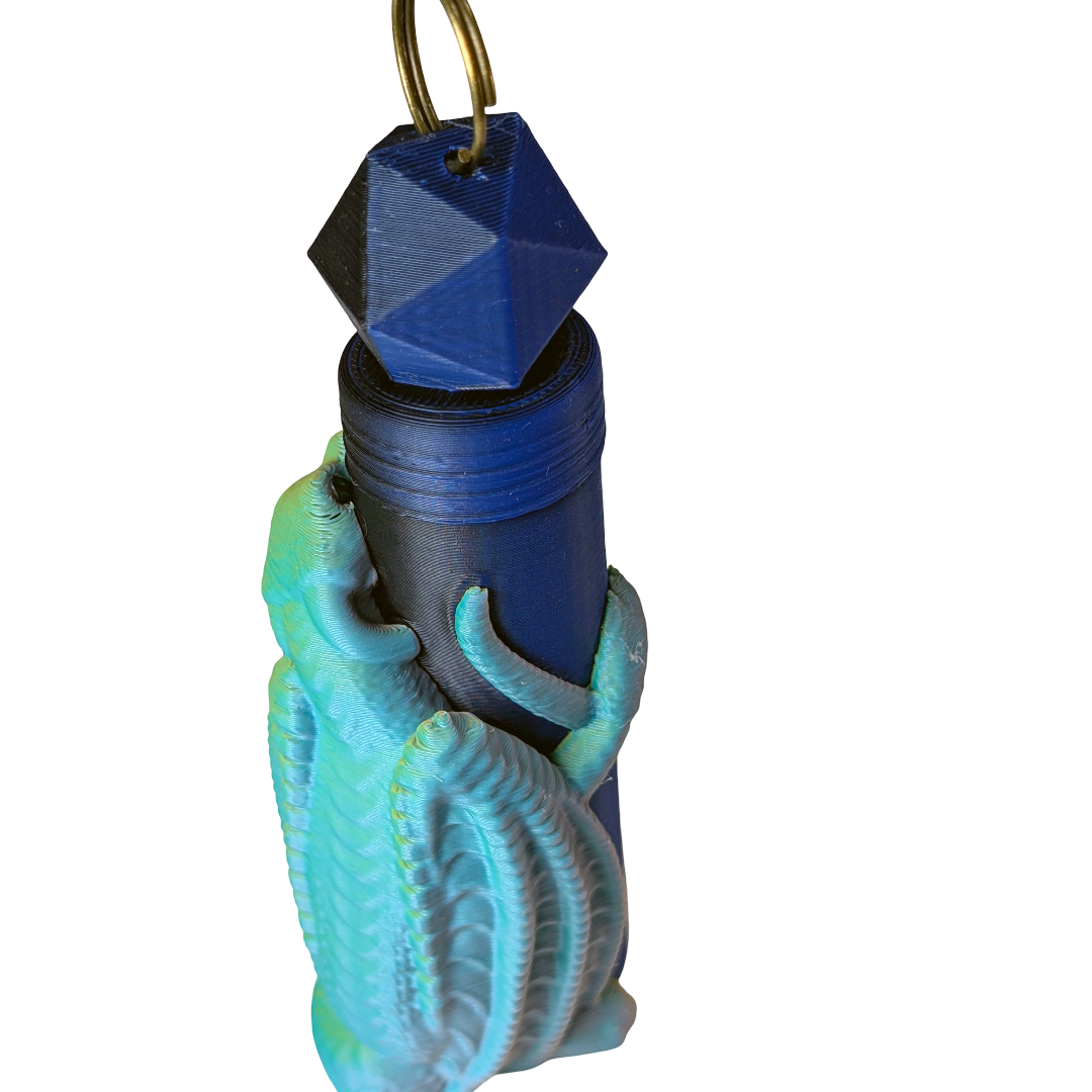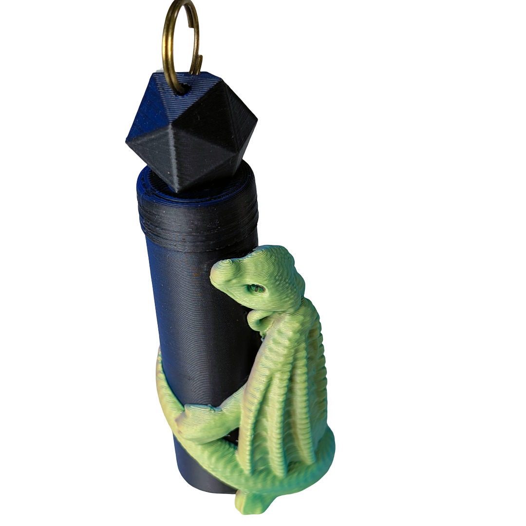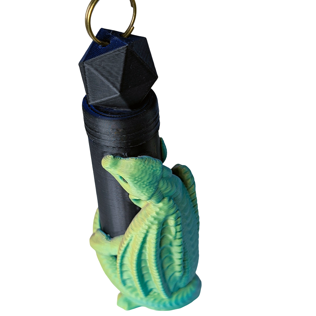 Keep your lip balm guarded by a tiny dragon that actually does its job. This Dragon Lip Balm Holder features bold blue, green, and black tones, with a compact design that clips neatly onto your keys or bag. 3D printed in lightweight PLA, it fits standard-sized lip balm tubes and uses a threaded lid to help keep everything safely inside. Practical, eye-catching, and much harder to lose than a loose tube rolling around your bag.