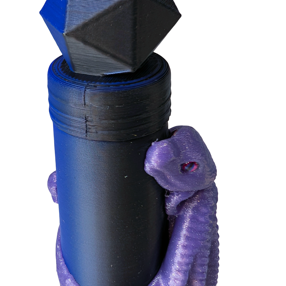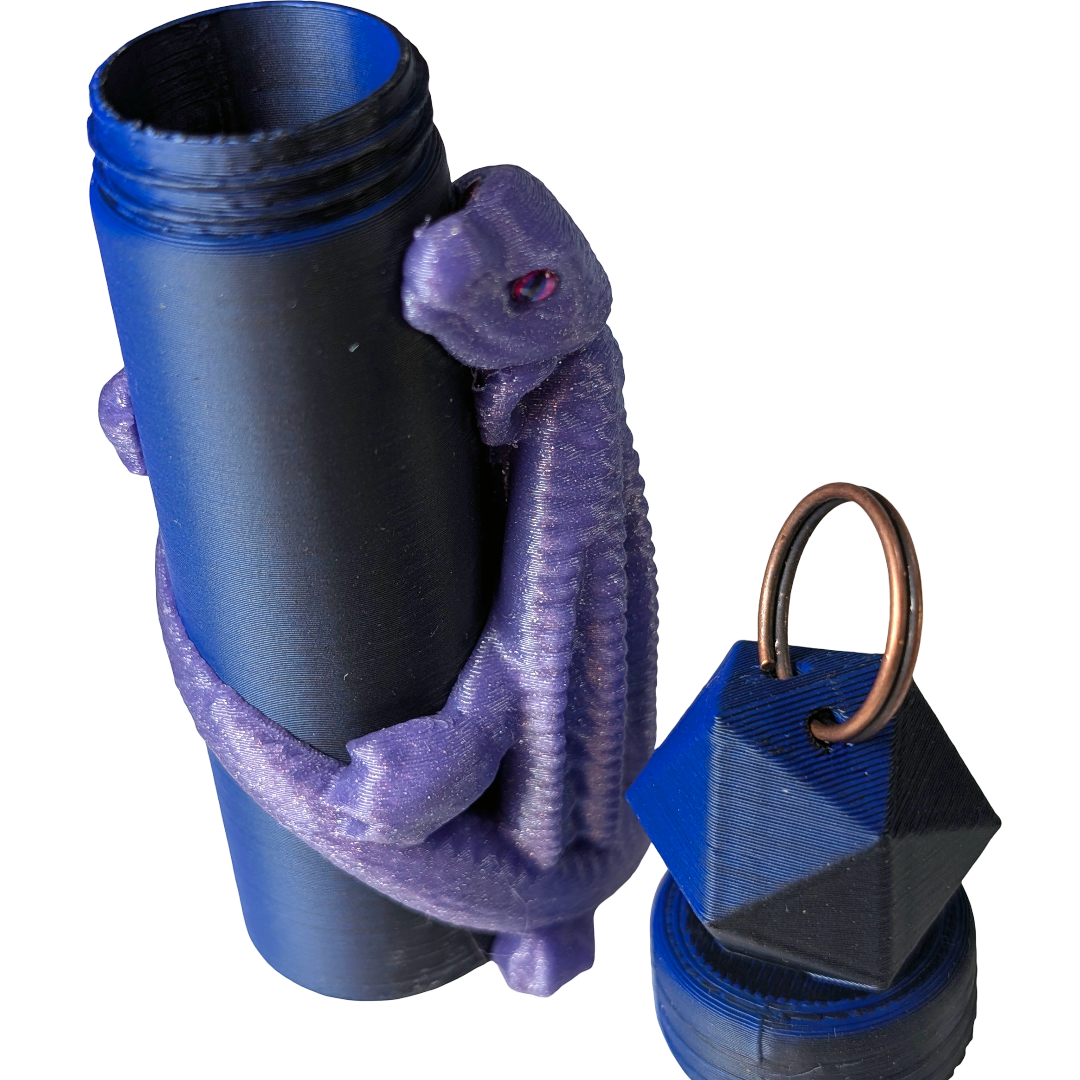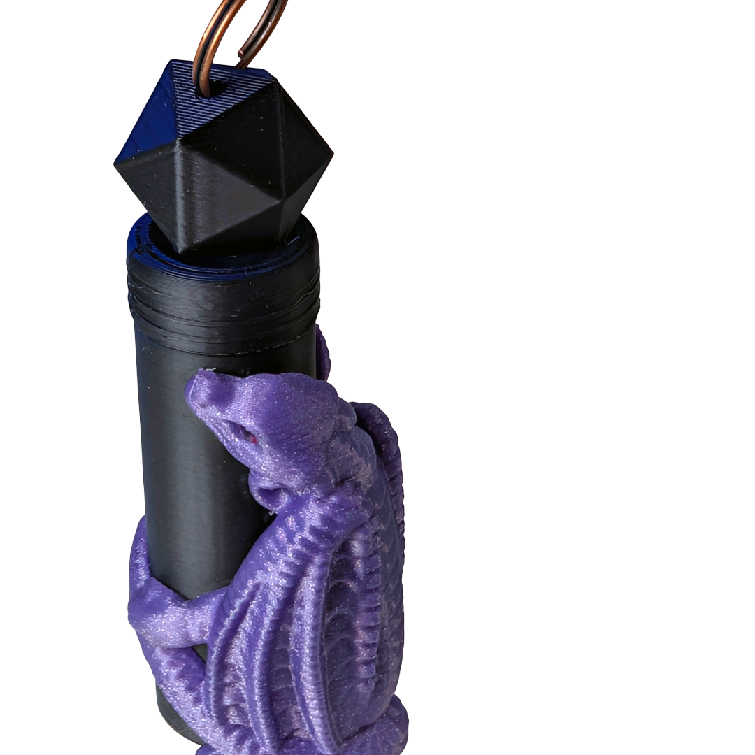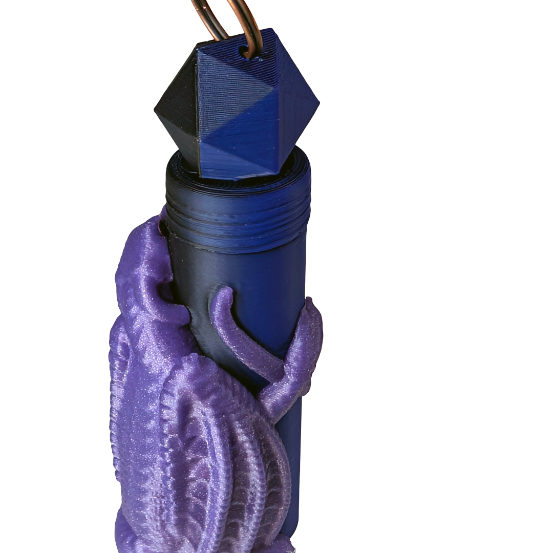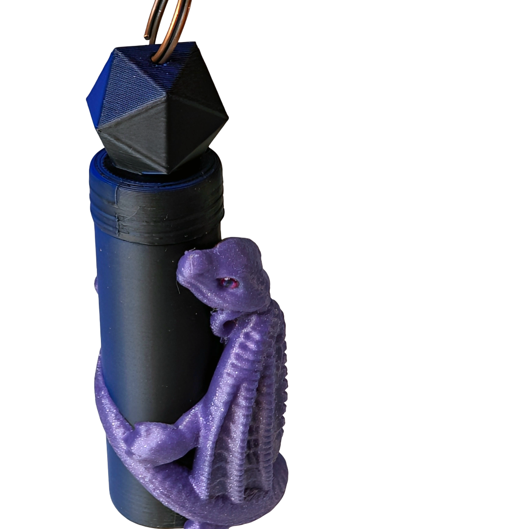 Never lose your lip balm again-this little dragon has it covered. The Dragon Lip Balm Holder combines bold purple with black-blue accents in a compact, pocket-friendly design that clips neatly to keys or bags. 3D printed in lightweight PLA, it suits standard-sized lip balm tubes and features a threaded lid to help keep everything secure. Practical, fun, and far more interesting than a loose tube rattling around.