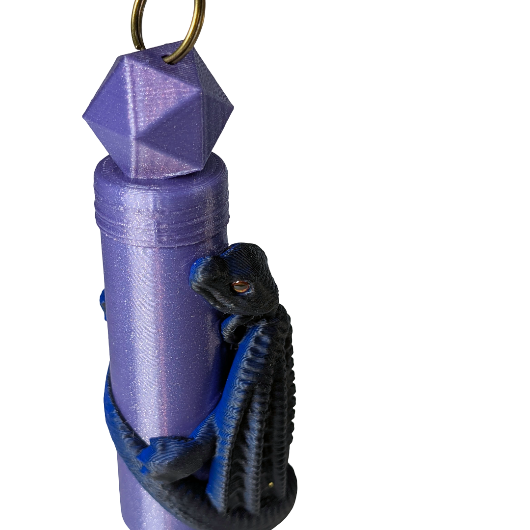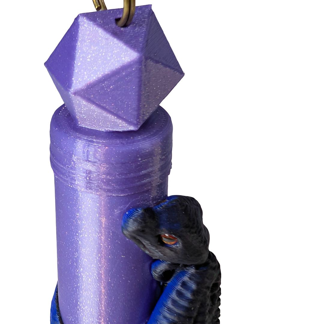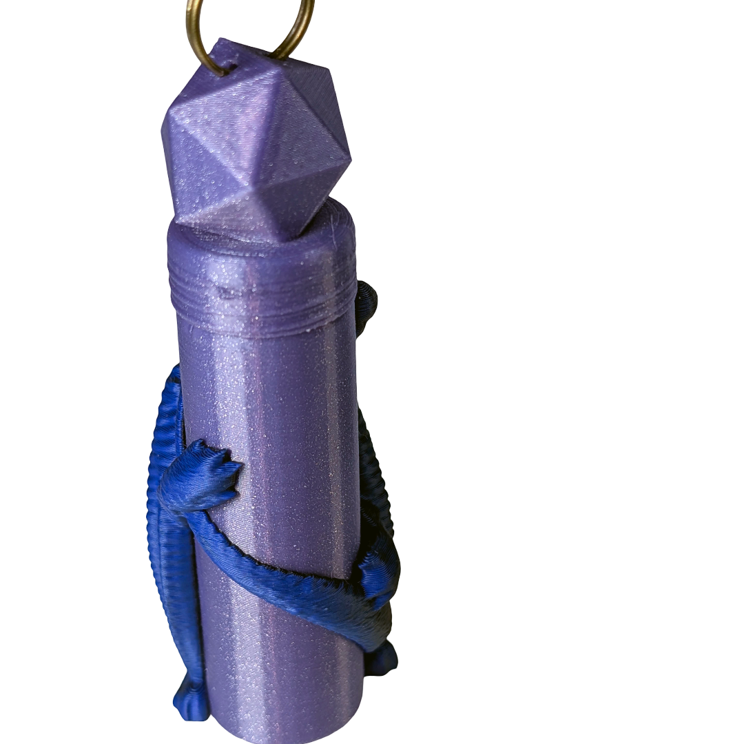 This little dragon takes its job seriously-guarding your lip balm wherever you go. Finished in striking black-blue and purple tones, this Dragon Lip Balm Holder clips easily to keys or bags so your balm is always close at hand. 3D printed in lightweight PLA, it suits standard-sized lip balm tubes and features a threaded lid to help keep everything secure. Practical, eye-catching, and a lot more fun than digging through your bag.