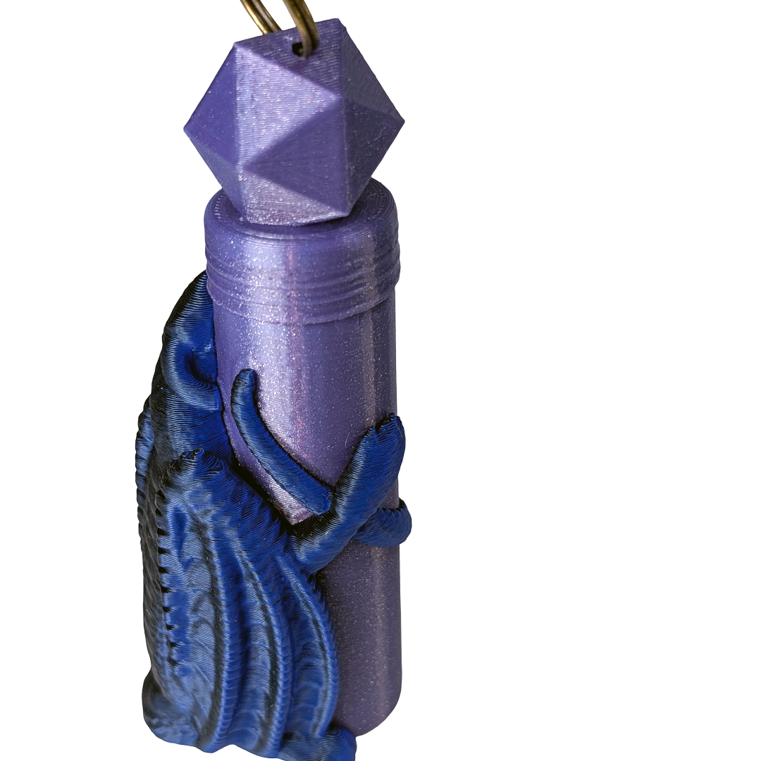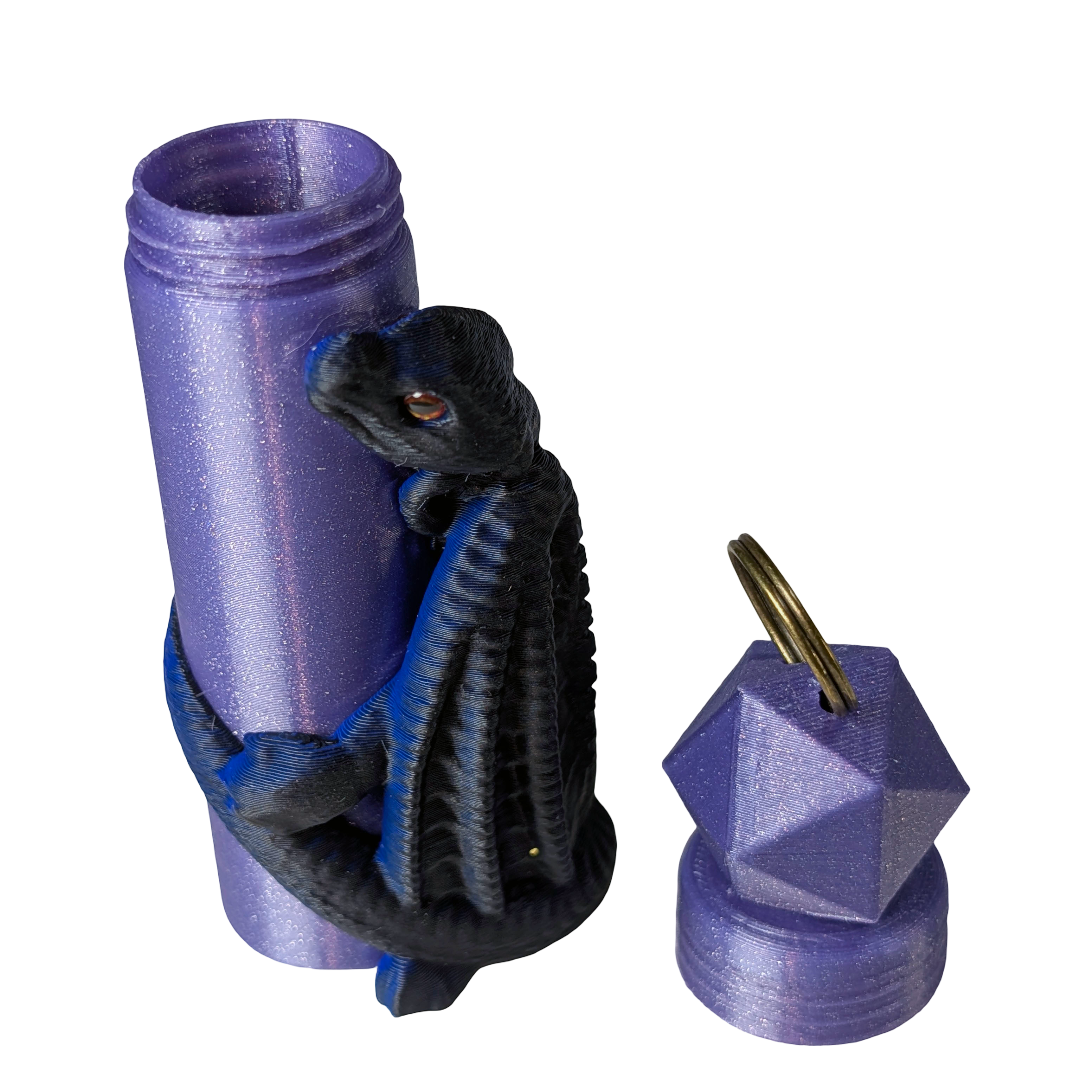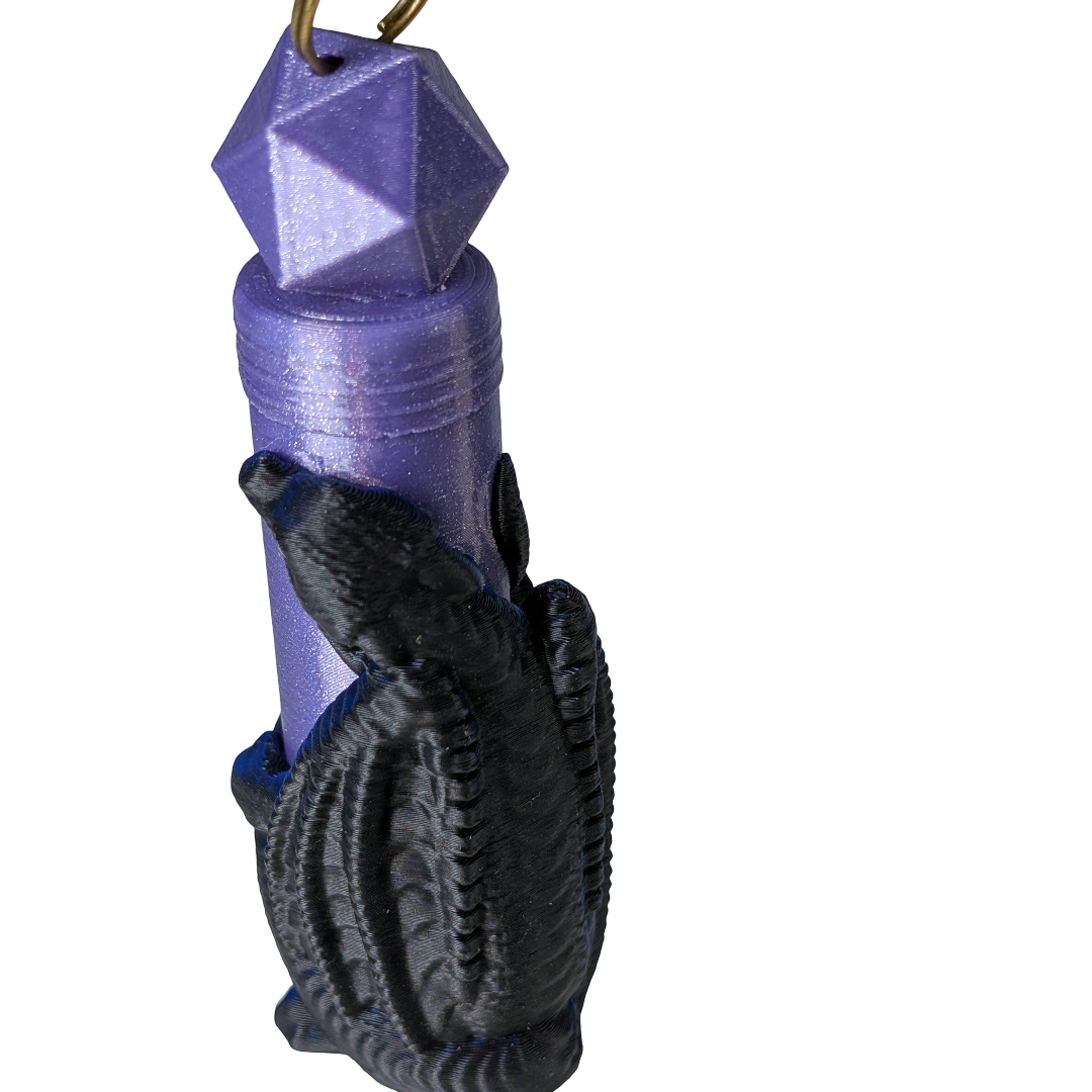 This little dragon takes its job seriously-guarding your lip balm wherever you go. Finished in striking black-blue and purple tones, this Dragon Lip Balm Holder clips easily to keys or bags so your balm is always close at hand. 3D printed in lightweight PLA, it suits standard-sized lip balm tubes and features a threaded lid to help keep everything secure. Practical, eye-catching, and a lot more fun than digging through your bag.