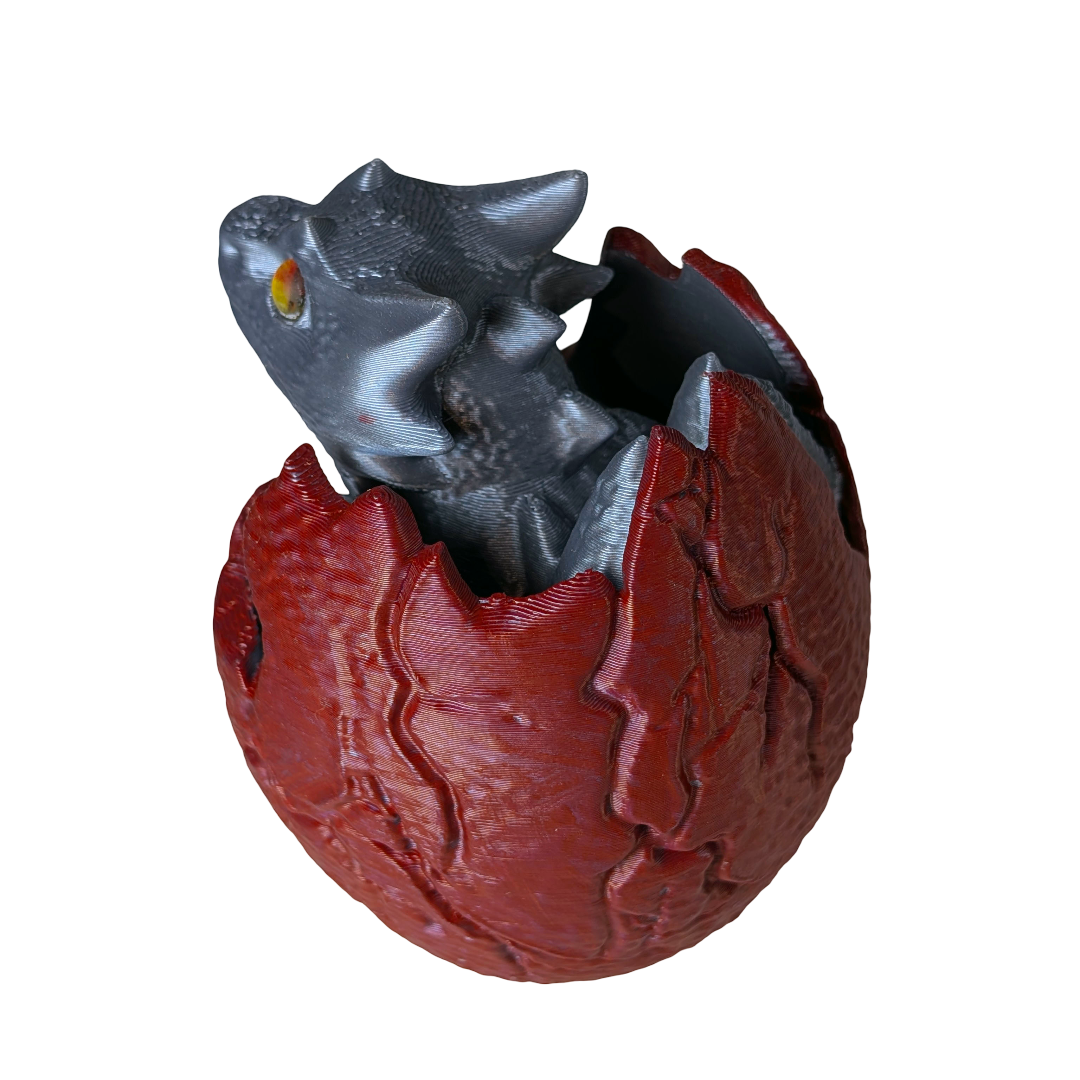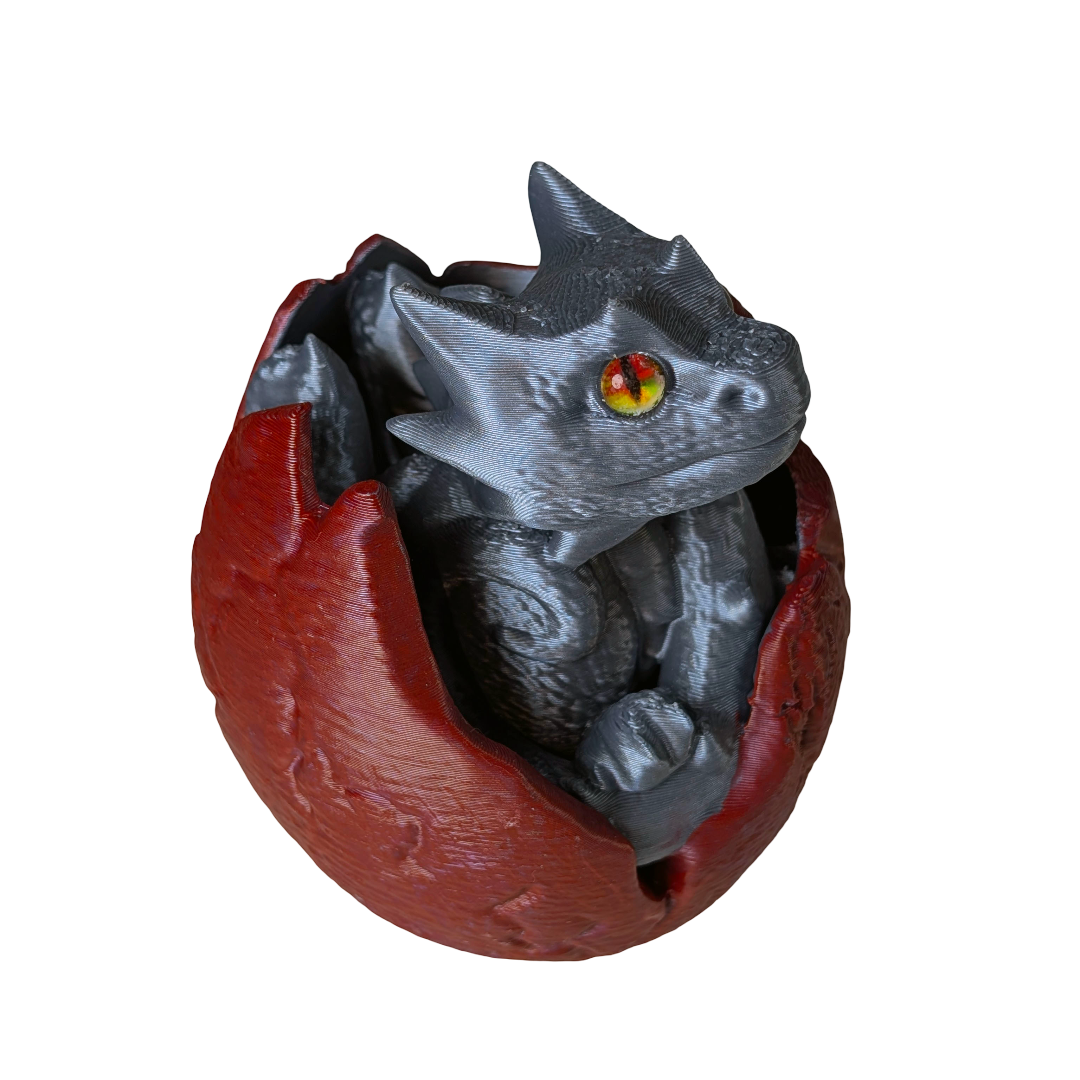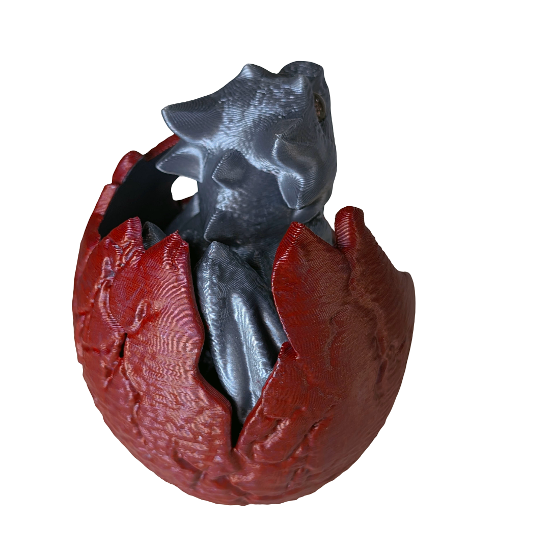Fresh from the egg and full of character, the Hatchling Dragon Figurine captures a moment of curiosity in a compact, display-friendly size. Designed as a decorative piece, it features a dragon emerging from its shell with sculpted detail that stands out without overwhelming the space. 3D printed in PLA and finished by hand, this medium-sized figurine includes hand-painted details and carefully applied artificial eyes. A lovely addition to shelves, desks, or fantasy-themed displays where a slightly smaller footprint is ideal.
