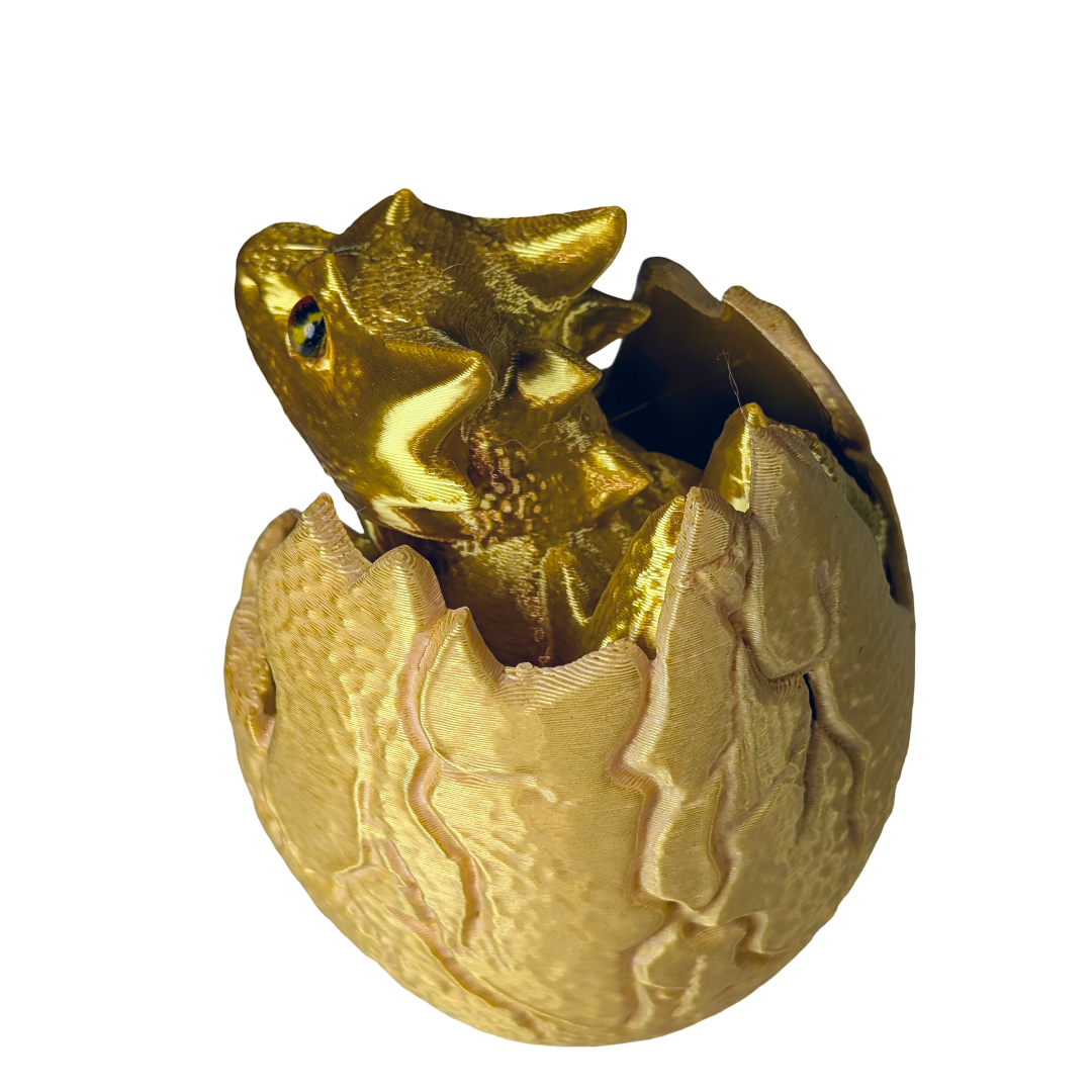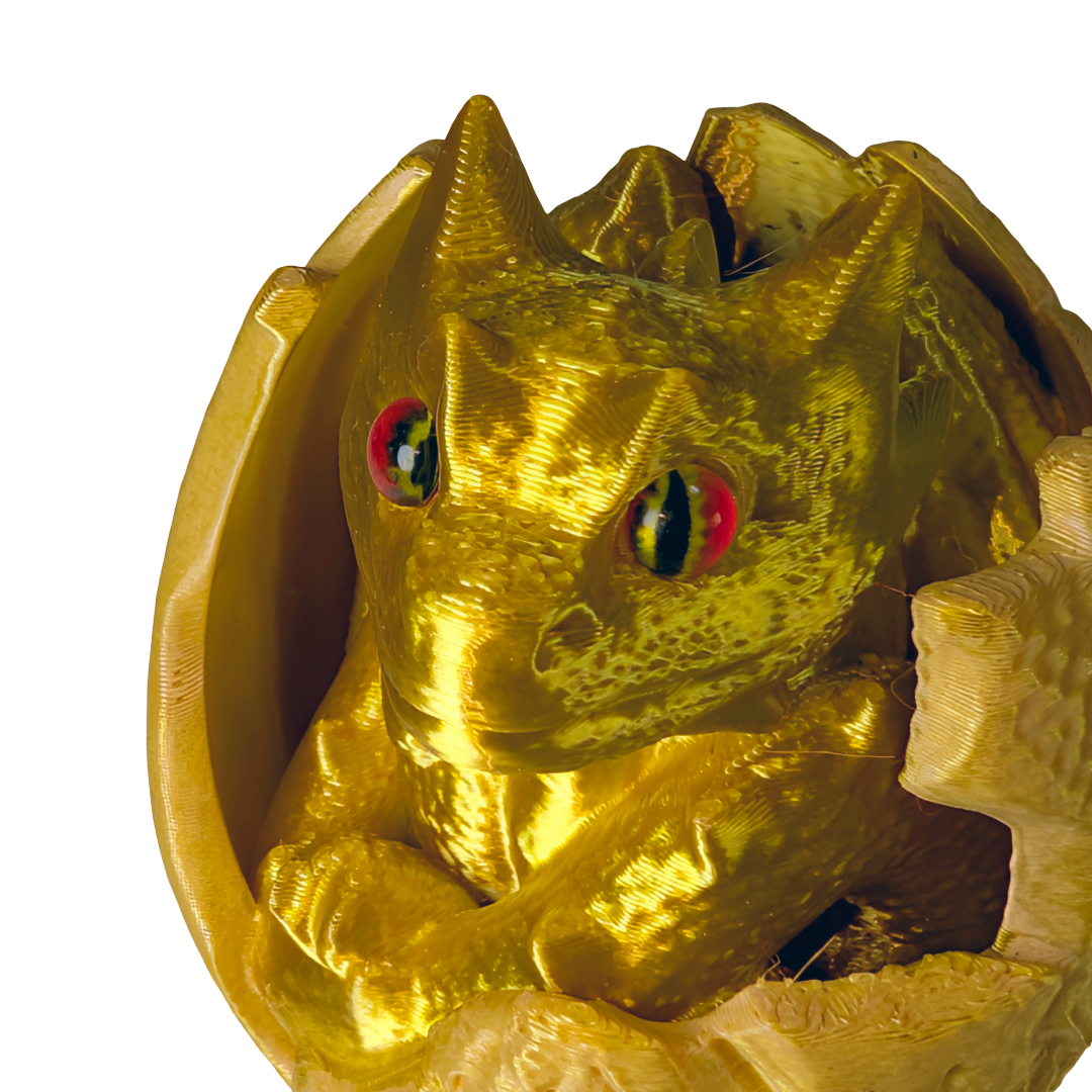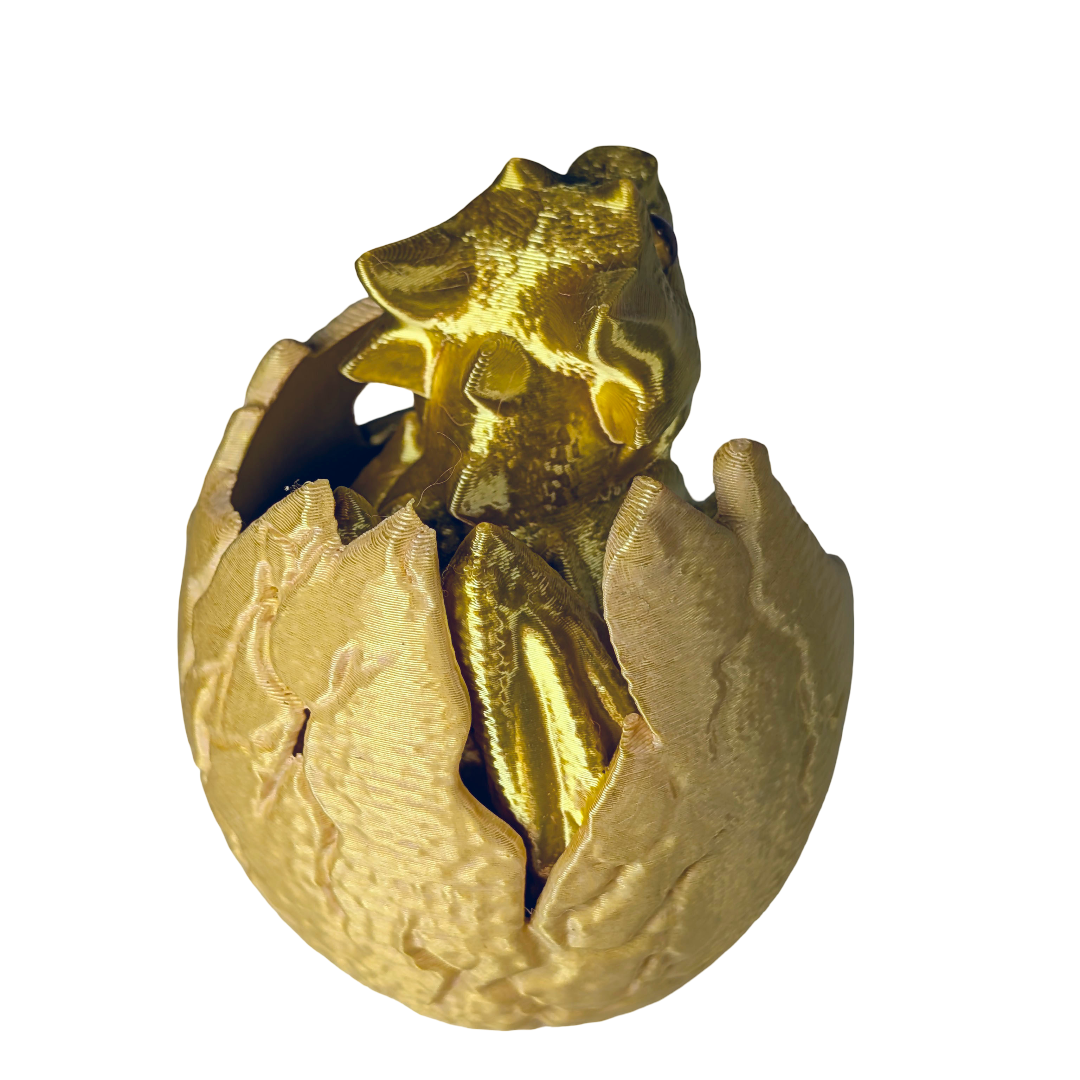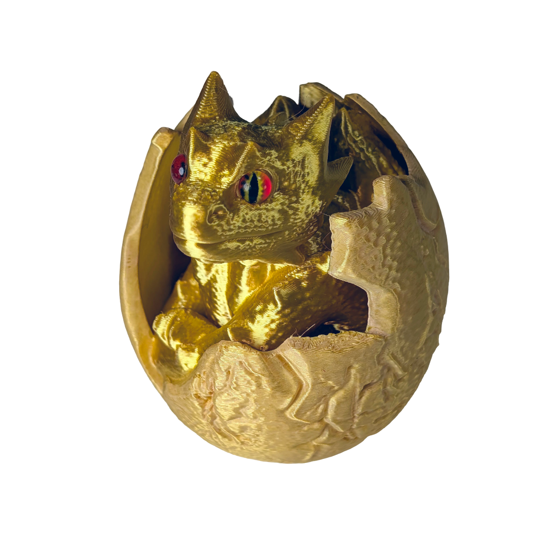 Fresh from the egg and full of character, the Hatchling Dragon Figurine captures a moment of curiosity in a medium-sized display piece. The sculpted dragon emerging from its shell adds a touch of fantasy without taking up too much space. 3D printed in PLA and finished by hand, this figurine features hand-painted details and carefully applied artificial eyes. A lovely addition to shelves, desks, or fantasy-themed displays where a compact but detailed piece is just right.