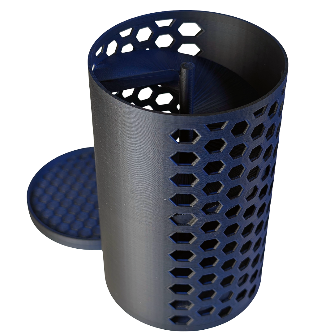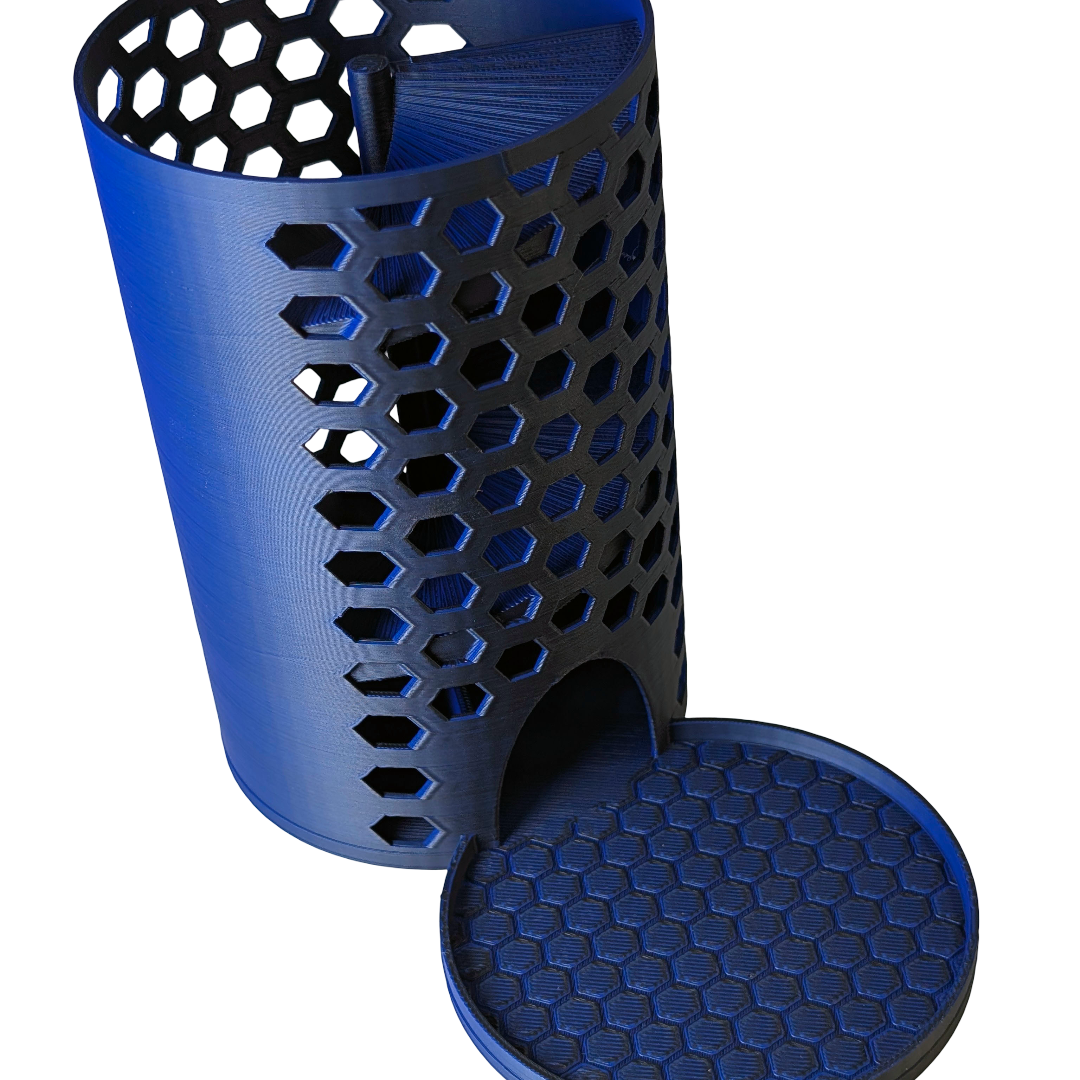 Clean lines and a striking geometric pattern give the Hexagons Dice Tower a modern look that still feels right at home on the gaming table. Designed to guide and randomise dice rolls, it offers a smooth, controlled roll while adding visual interest to your setup. 3D printed in PLA with a dual-colour matte finish, each tower is finished by hand and built with a slow rolling action for anticipation with every roll. A great option for tabletop role-playing games and board games that favour a more contemporary aesthetic.