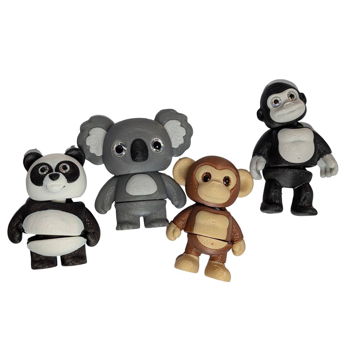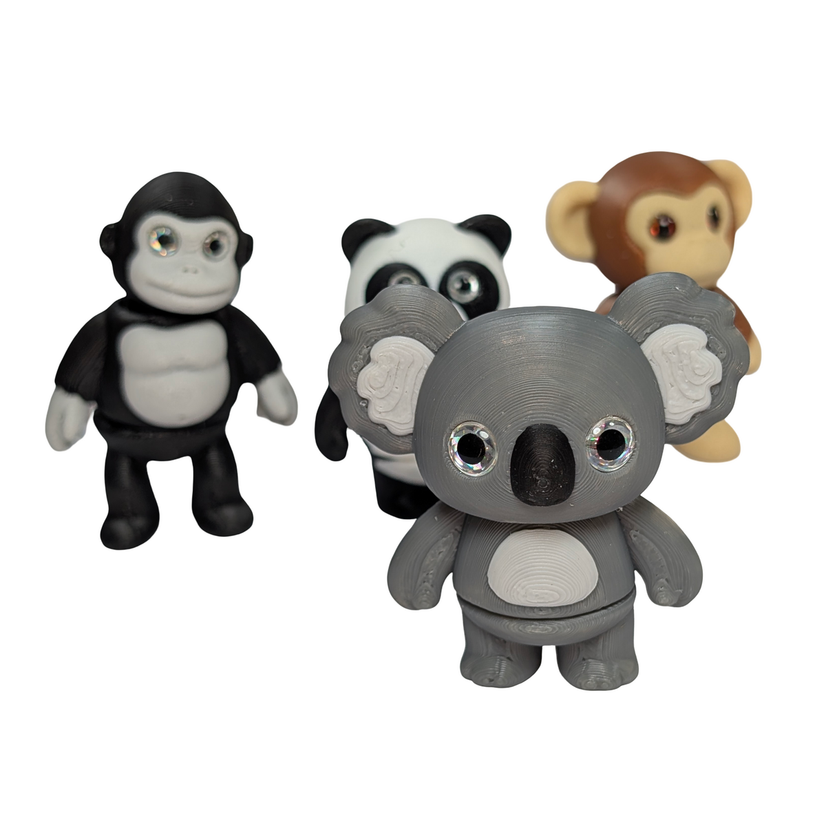 Part of the Wild Friends series, this set includes 4 articulated creature magnets, each representing a different animal - Koala, Chimp, Gorilla, and Giant Panda. Each figure features 2 points of articulation and can also stand on its own, making the set suitable for magnetic surfaces as well as desks, shelves, and small display spaces.