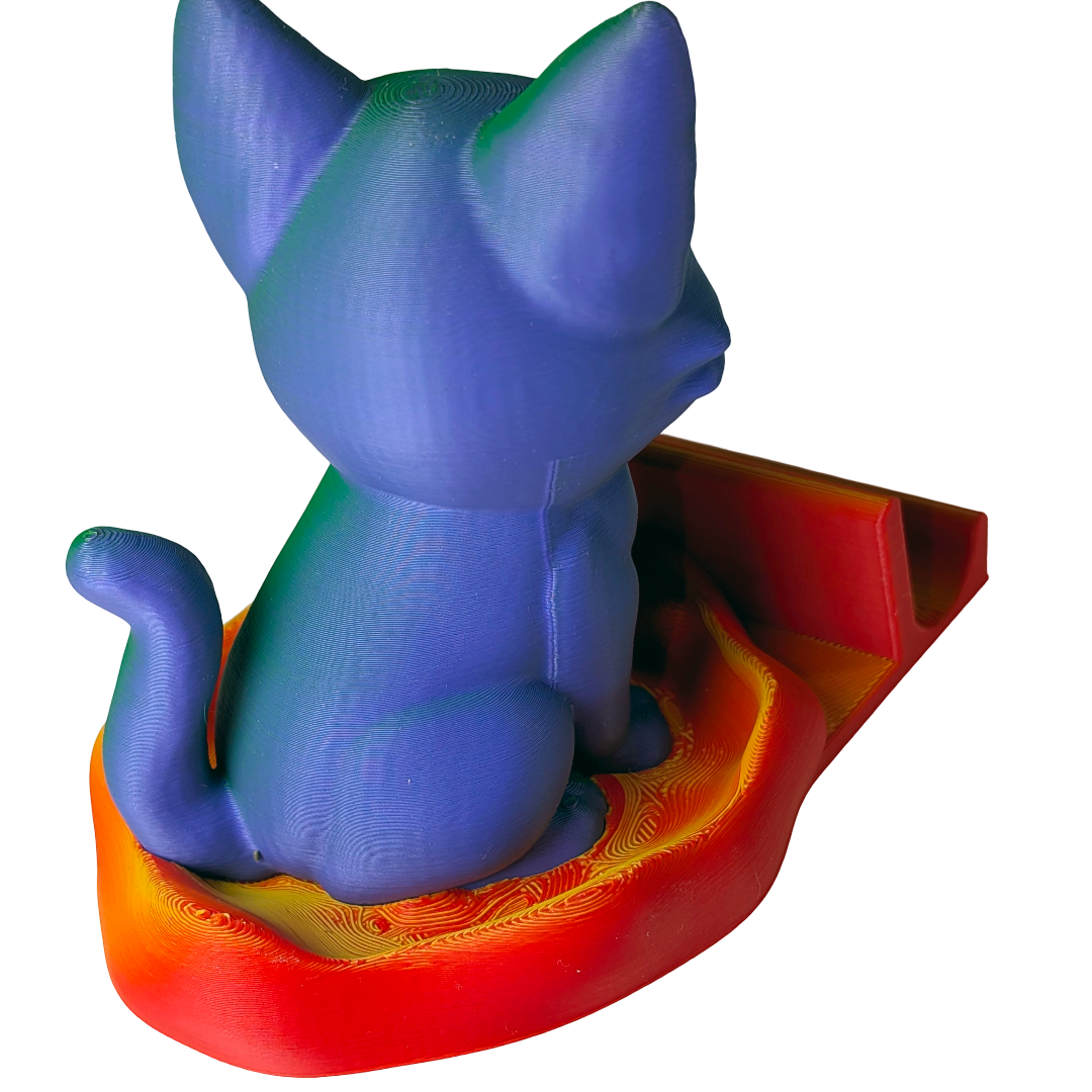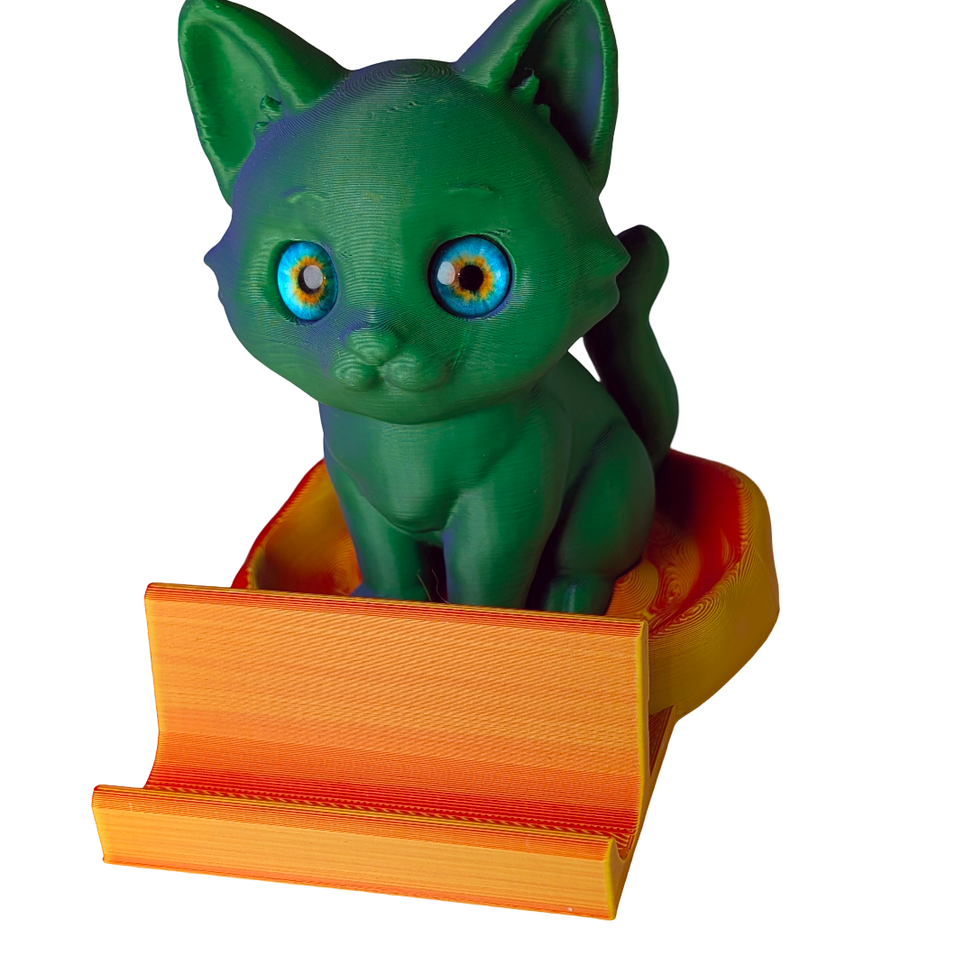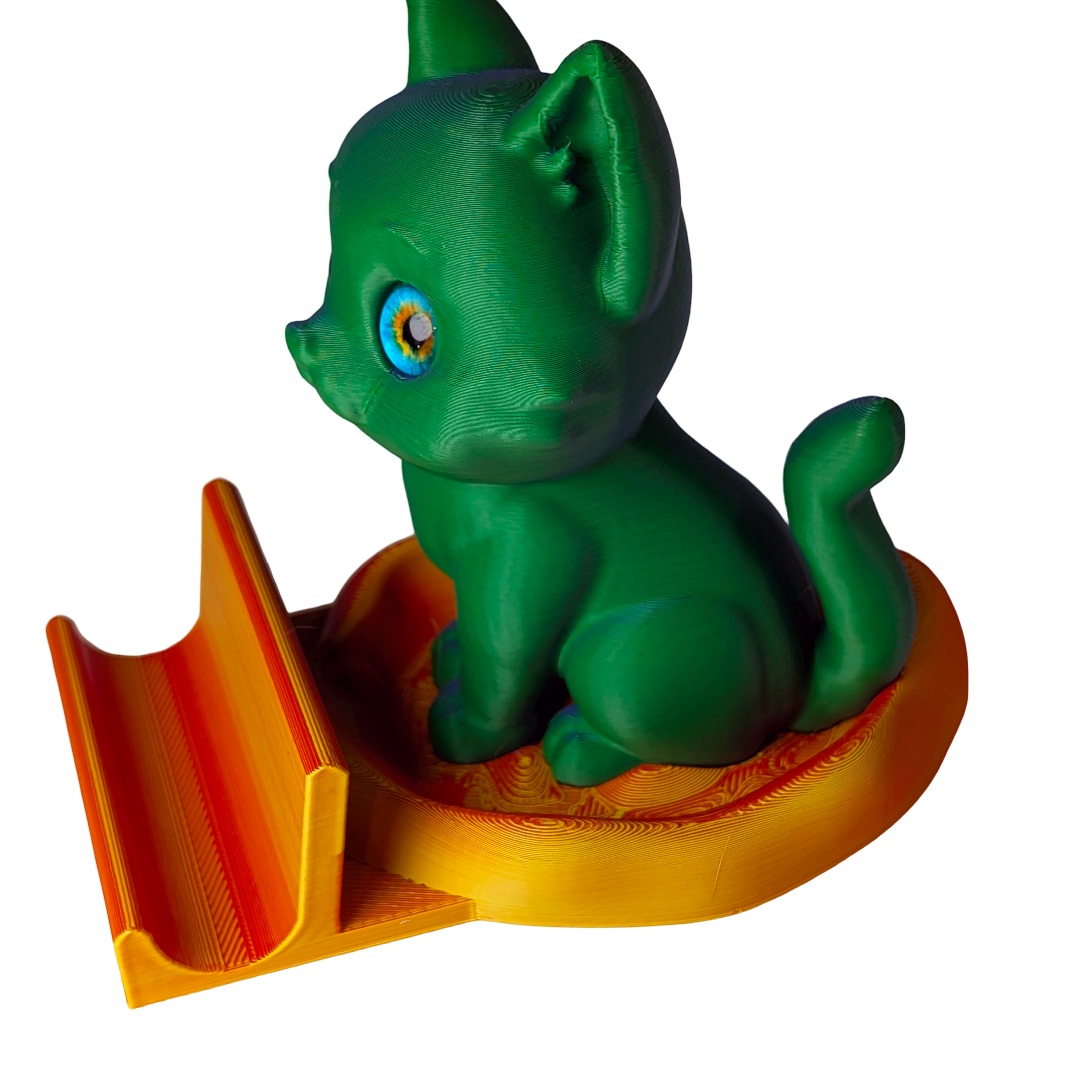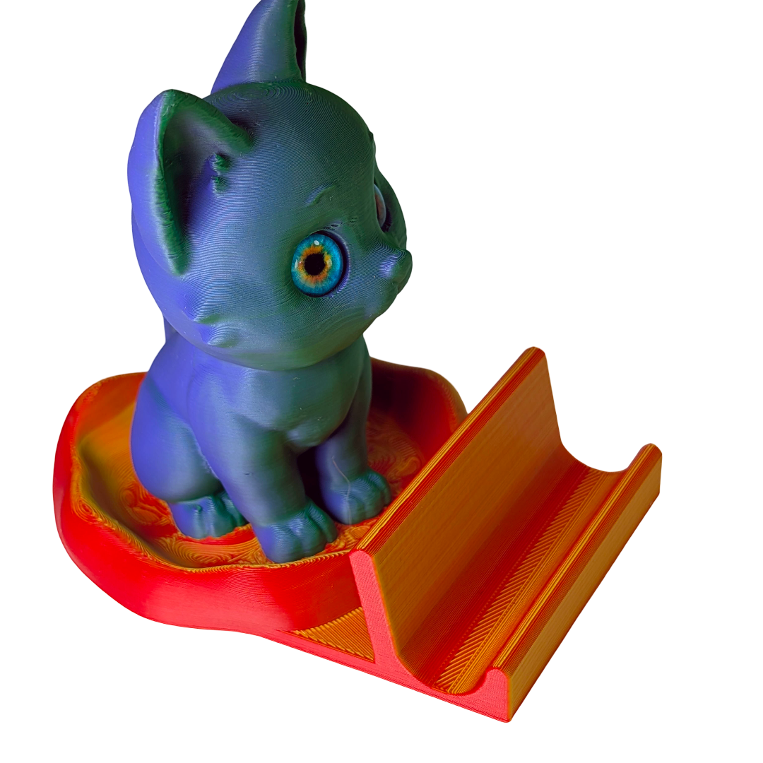 The Kitten Phone Stand is equal parts practical and adorable. Shaped like a curious little kitten, it keeps your phone upright while adding a pop of colour and personality to your space. 3D printed in lightweight PLA with dual colour matte finishes in purple and green, and orange and red, this stand is compact, sturdy, and easy to place wherever you need it. Ideal for video calls, scrolling, or keeping your screen visible while you work, study, or relax.