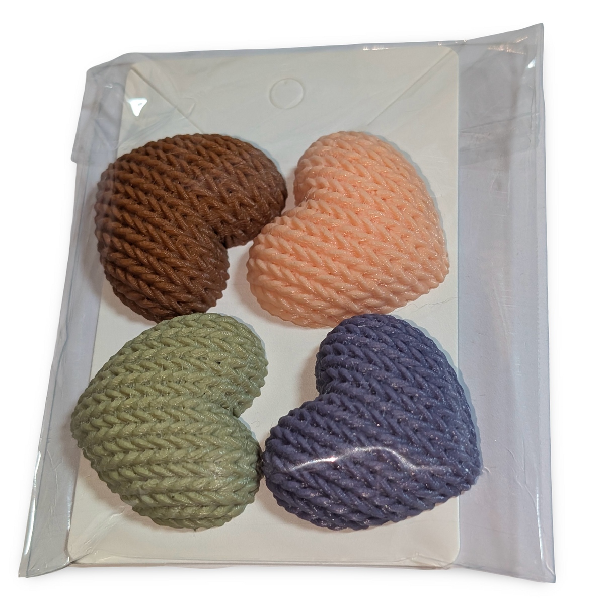 • Set of four knitted-style heart magnets