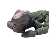 Designed with display and everyday use in mind. This Komodo Dragon flexible figure reflects the powerful presence of the world's largest living lizard. Native to Indonesia, the Komodo dragon is widely known for its impressive size and distinctive, rugged appearance. 3D printed in brown and green dual colour matte PLA, this large figure features 31 points of articulation for poseable display. Hand-applied eyes and high detail finishing enhance its lifelike representation. Designed by KEKreations and handmade by Supportive Solutions, it measures approximately 370 x 180 x 90 mm (14.57 x 7.09 x 3.54 inches) and weighs around 142 g. A striking wildlife-inspired piece suited to collectors, desk displays or themed décor.