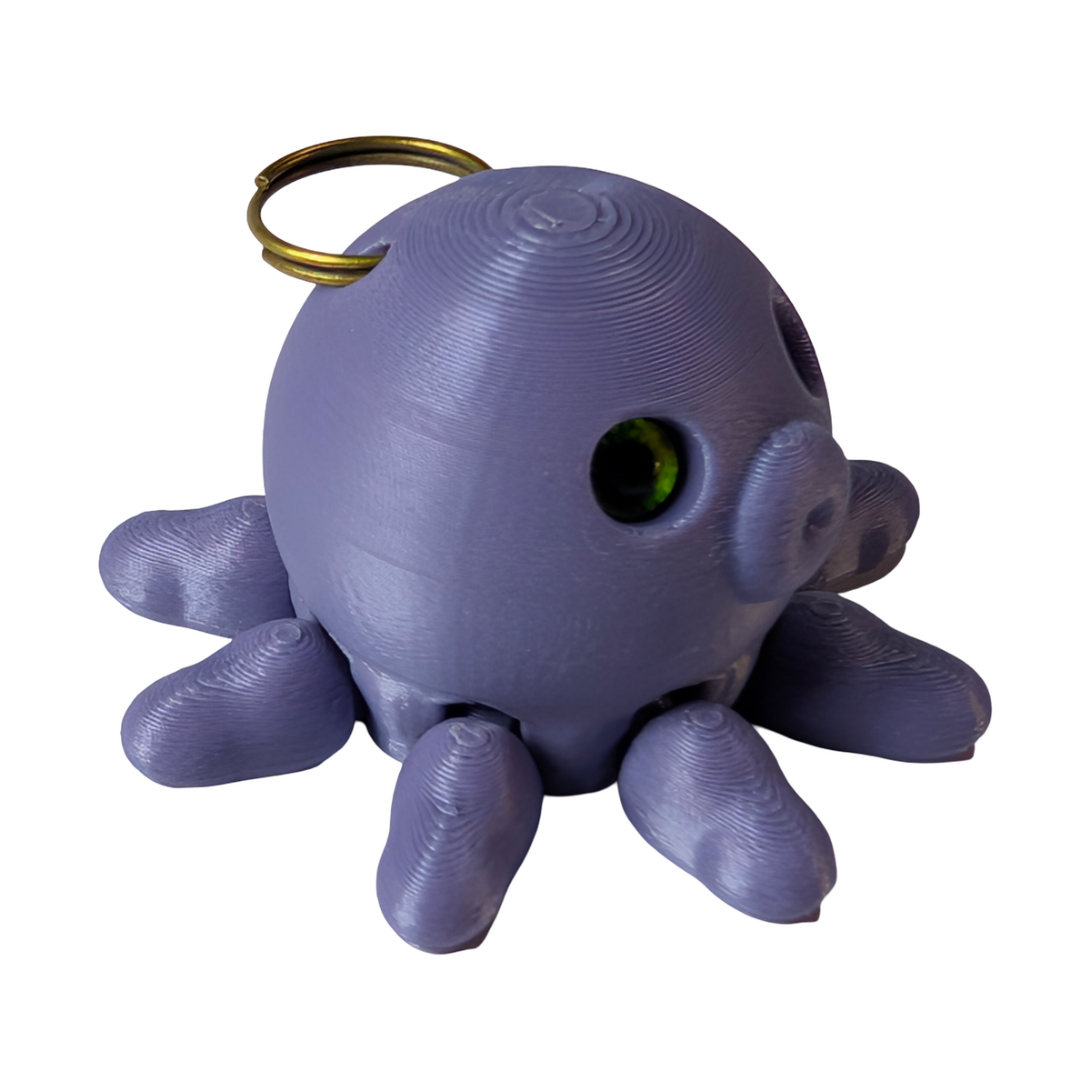 Eight arms, zero worries . This articulated octopus keyring and bag charm is 3D printed in purple matte PLA and finished with hand-applied eyes for extra personality. Lightweight and compact, it's a fun way to add a splash of marine life to your keys, backpack, or everyday bag. A clever little ocean companion that's always ready to tag along. From Australia.